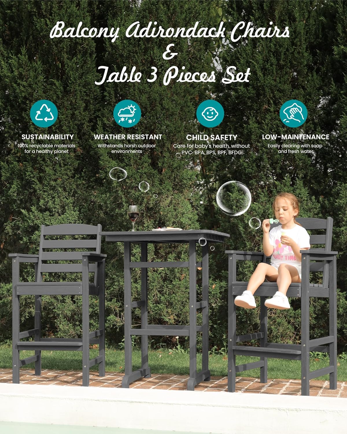 - 5-Year Cutsomer Service - We want our customers to be 100% happy and satisfied with SERWALL balcony adirondack chair set. If there are any problem about your product, please feel free to contact us.