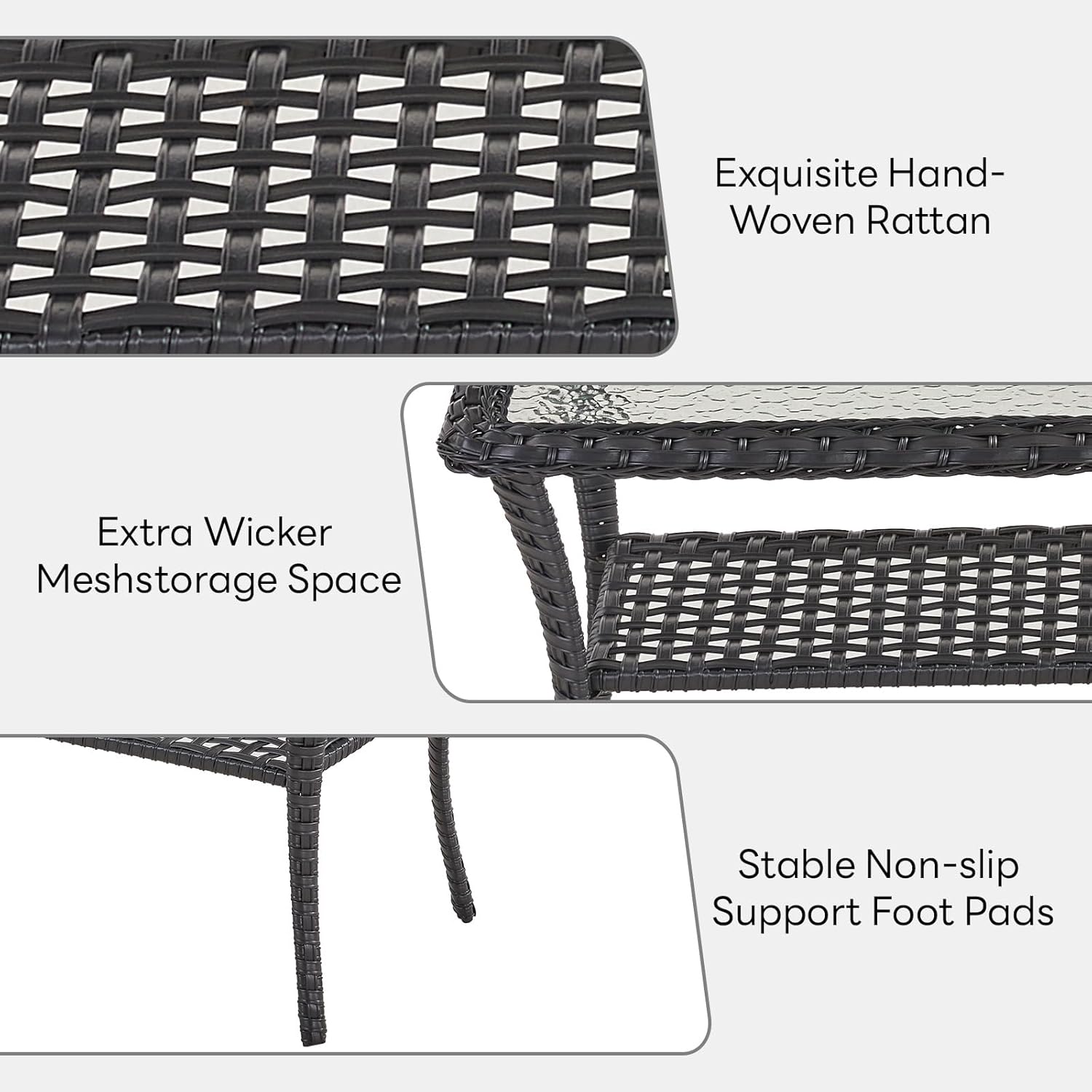 - 2-Tier Storage Solution: This wicker coffee table features a spacious 2-tier design, providing both a tempered glass top and a lower shelf for practical storage. Keep drinks, snacks, books, or decorative items organized and easily accessible, adding functionality to your outdoor relaxation area.