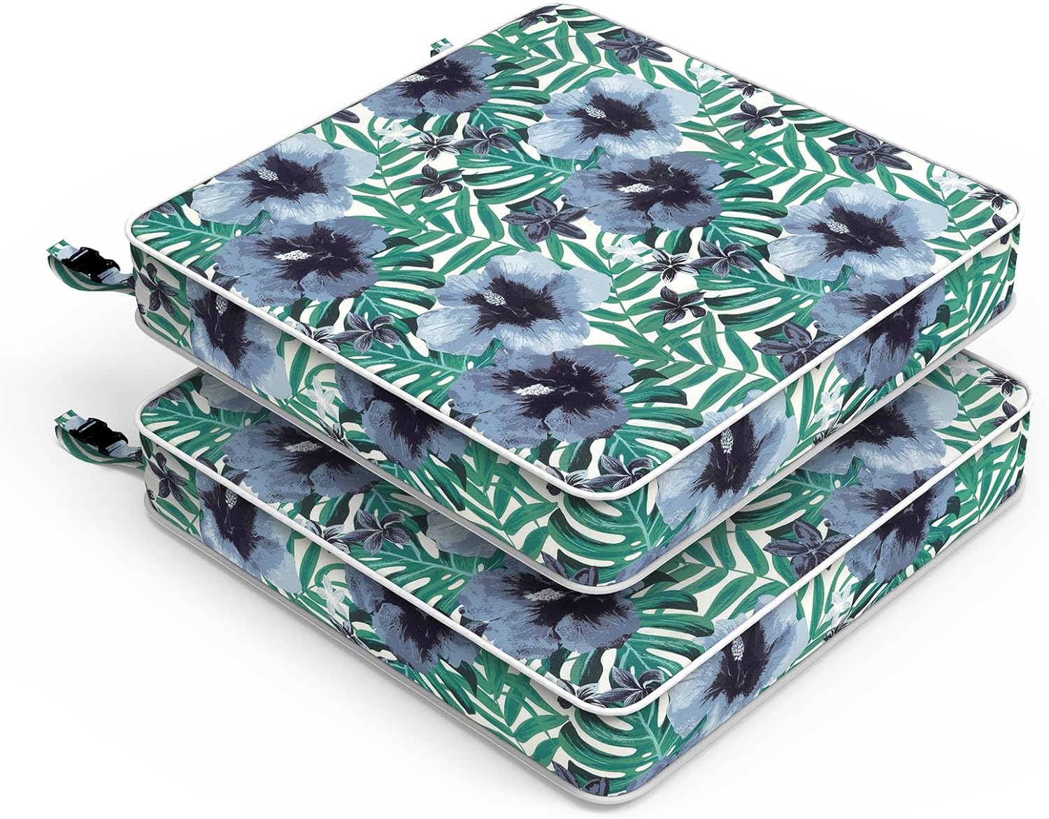 LVTXIII Patio Chair Cushions 22"x22"x3", Water-Repellent Outdoor Seat Cushions for Patio Furniture, Square Chair Pads with Ties for Home Garden Decoration, Set of 2, Blue Salmone Tropical