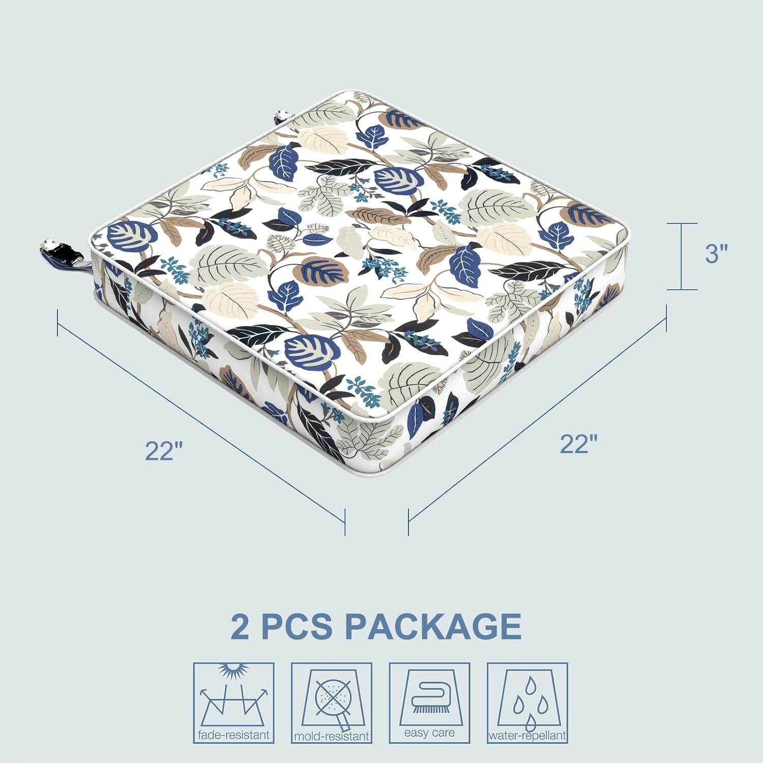 - PACKAGING: Includes 2-Pack outdoor chair cushions 22" x 22" x 3", perfect for patio chairs, garden sofas and more. Due to the vacuum compressed status, please allow 48 hours to restore thickness after opening the package