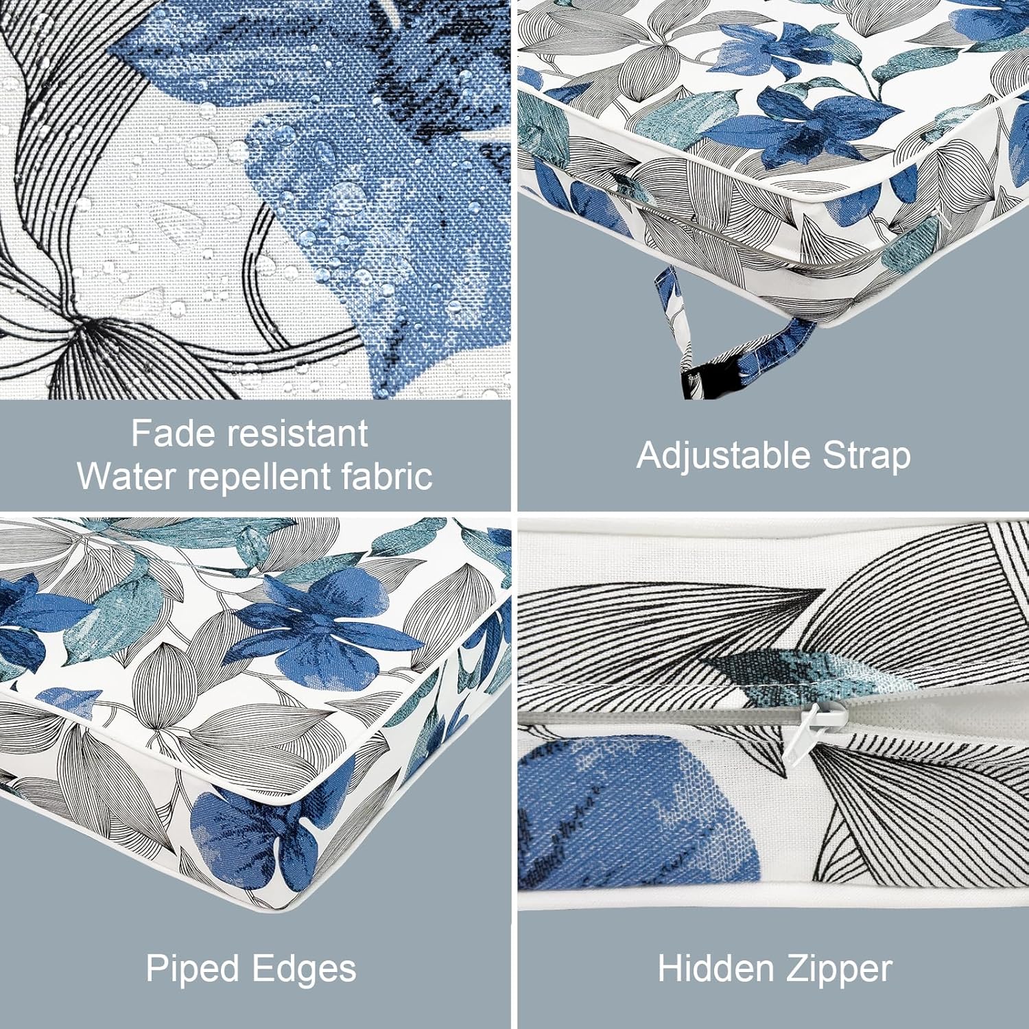 - NON-SLIP DESIGN: Each outdoor furniture cushion with adjustable straps help keep cushion securely attached to your chairs. You can sit back and relax without worrying about the cushions shifting or slipping