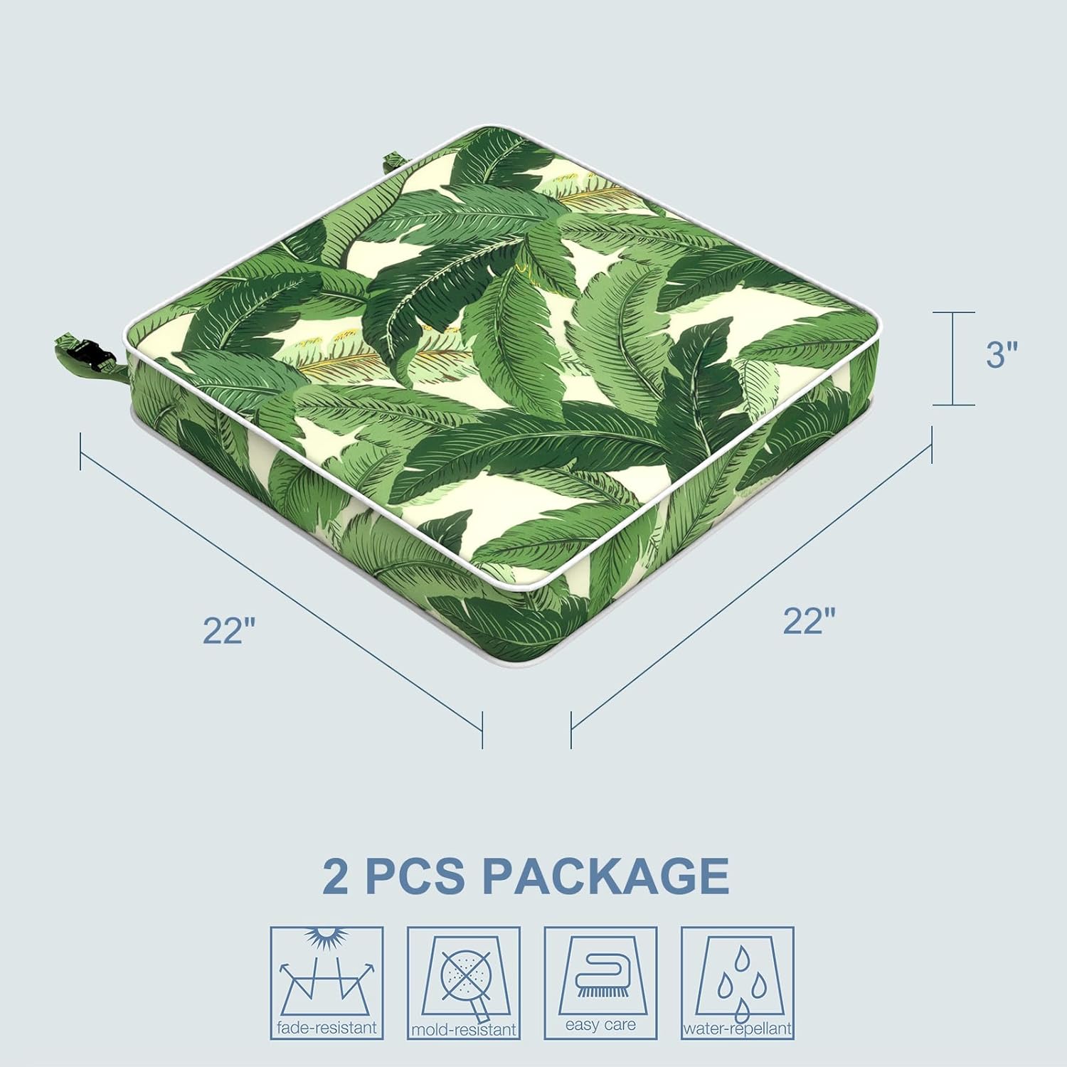 LVTXIII Patio Chair Cushions 22"x22"x3", Water-Repellent Outdoor Seat Cushions for Patio Furniture, Square Chair Pads with Ties for Home Garden Decoration, Set of 2, Swaying Palms Green