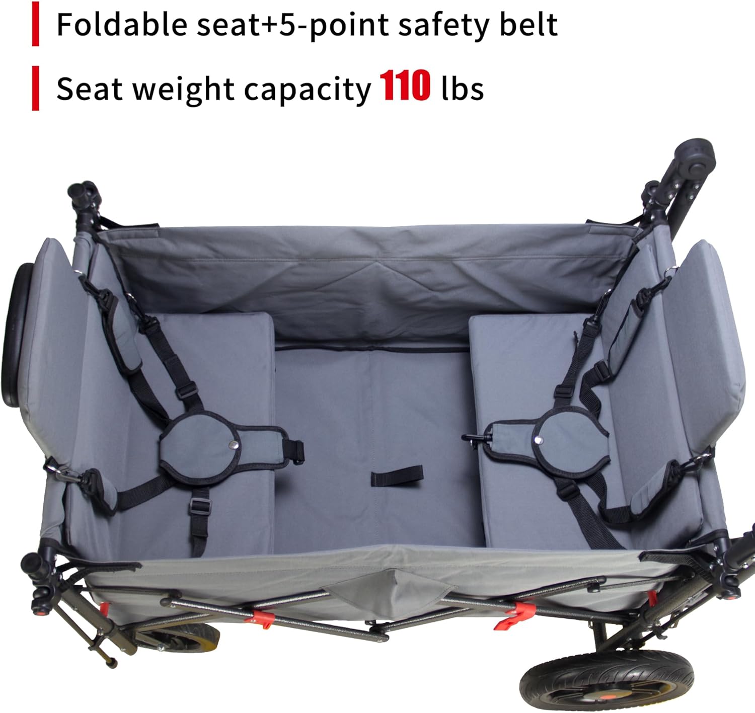 TMZ Collapsible Foldable Wagon Cart with Quick-Release Wheels and 2 Seats, Heavy Duty Wagon 265LBS Load Capacity for Camping Garden Shopping (Grey)