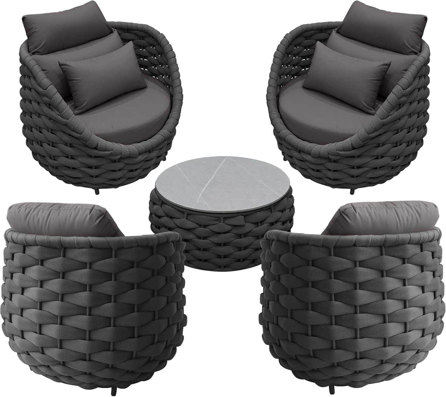 - Sturdy & Durable - Quick drying woven rope outdoor furniture with high quality aluminum alloy,no rust,no deformation,hand woven textilene rope are strong enough to withstand all weather variations.Outdoor patio furniture set cushions balance well with sturdy frame.