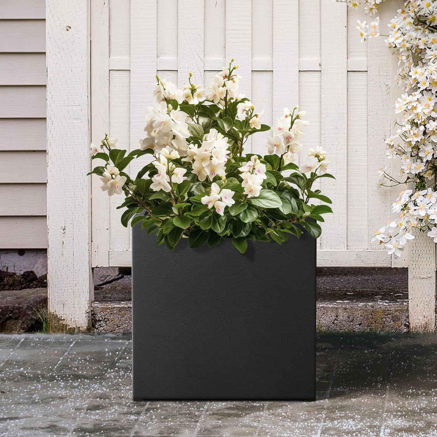 Kante 10 Inch Square Concrete Planter for Outdoor Indoor Home Patio Garden, Large Plant Pot with Drainage Hole and Rubber Plug, Black