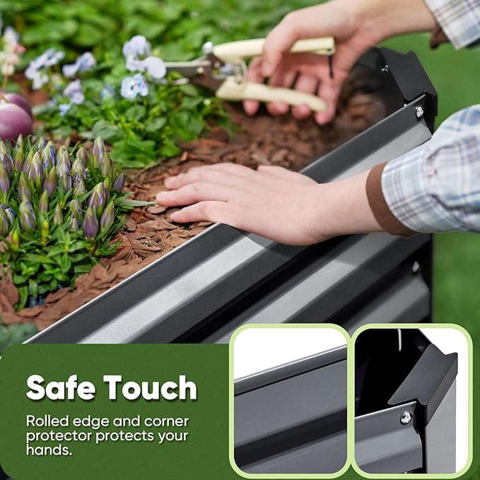 - 【Safe Rolled Edges & Corner Guards】Our raised planter box features rolled edges and corner guards that eliminate sharp protrusions, ensure your hands are not cut during assembly and planting - a critical upgrade parents and pet owners appreciate.