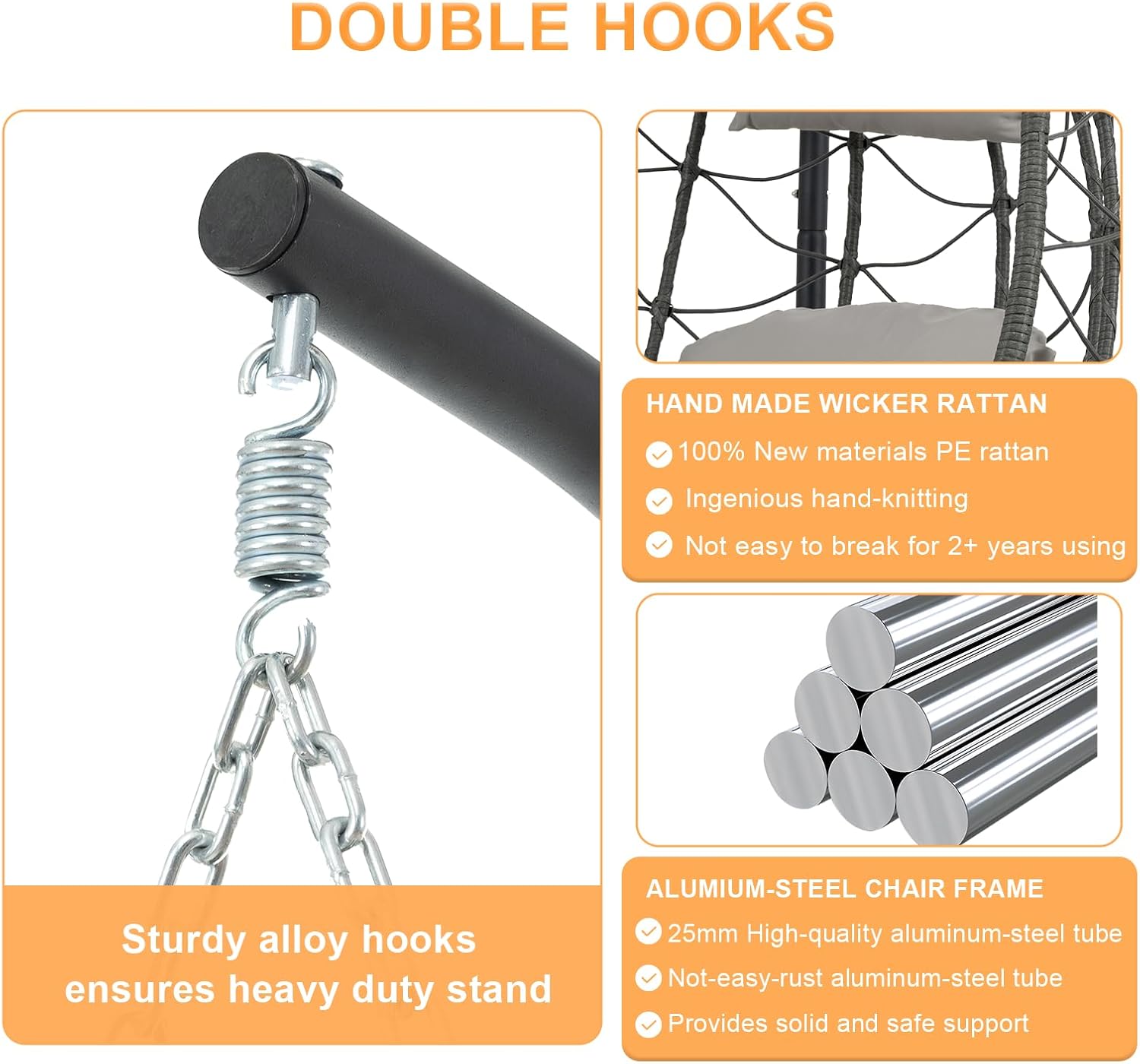 - [Sturdy and Durable]: Egg chair with stand's aluminum-steel frame and a sturdy heavy-duty steel stand ensures extend lifetime, and the sturdy stand provides stable support, the chain can hold up to 350 lbs, you can enjoy it for ears.