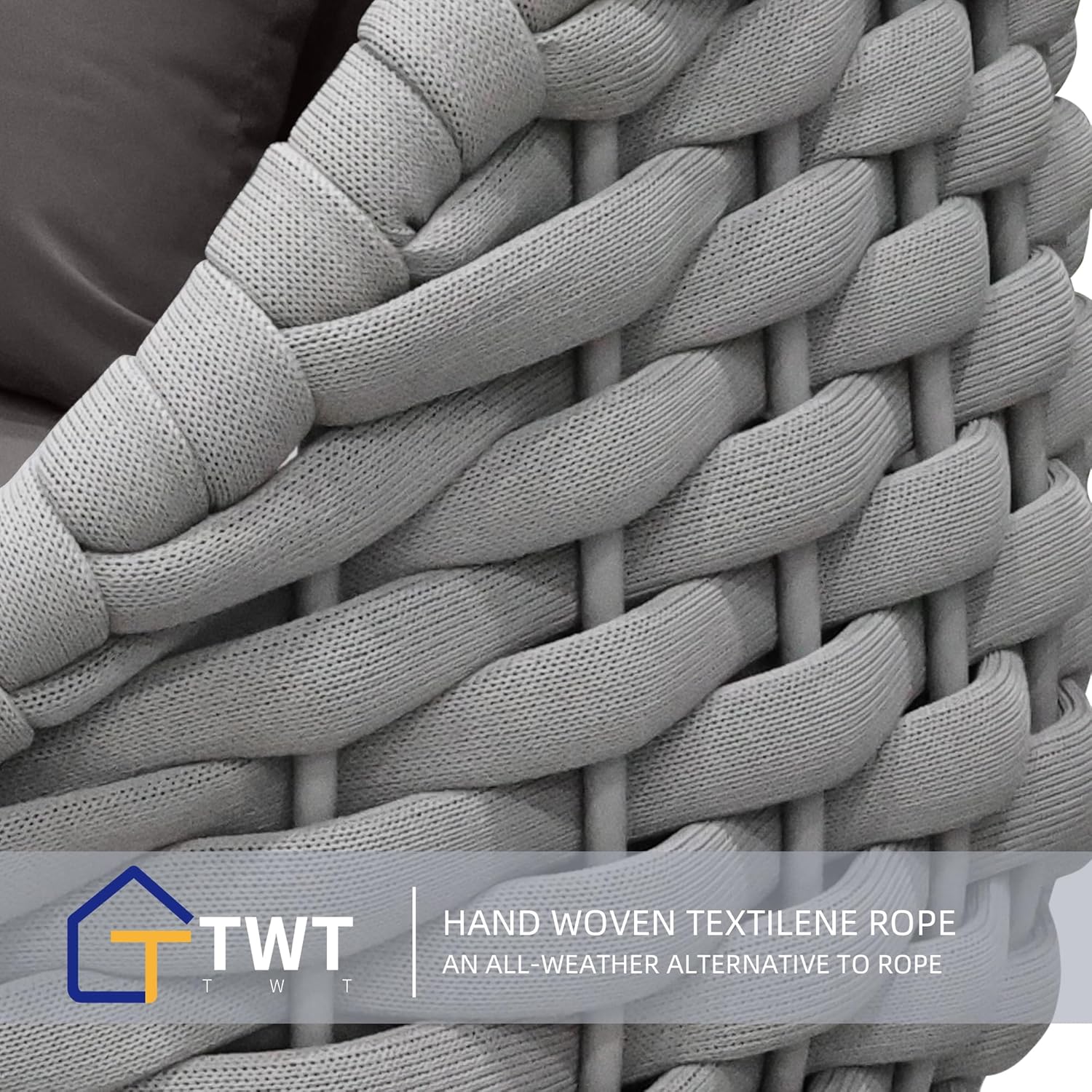 - NO required assembly & easy to clean:Our outdoor couch NO required assembly, just take them out and use. TWT patio chairs’ seat are easy to clean and polyester rope relatively soft. No need to take more extra special care to maintain patio couch