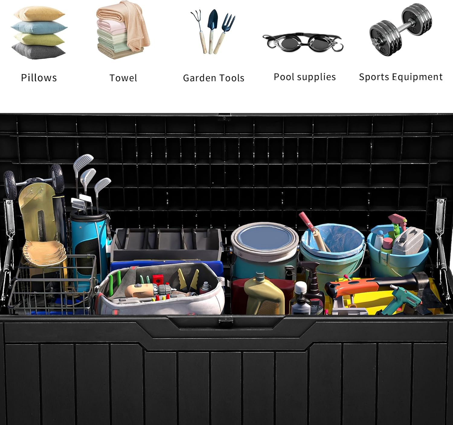 - Versatile and Secure: Our resin storage box is designed for both indoor or outdoor use, suitable for storing patio furniture cushions, gardening tools, pool accessories, and more; The deck box with lock design ensures your items stay safe and secure