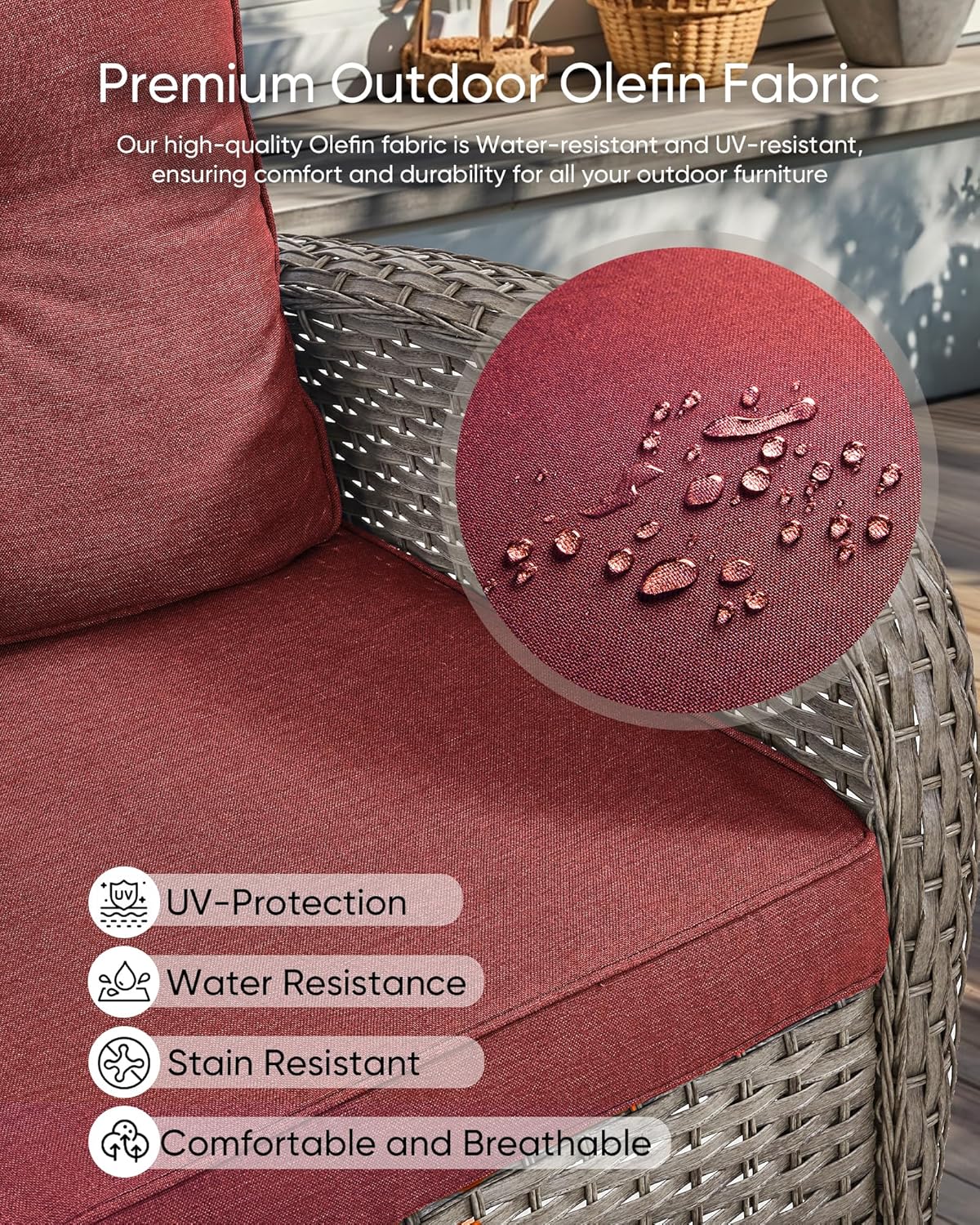 HUMMUH Outdoor Patio Couch-Outdoor Rattan Couch with Thick Cushions Outdoor Sofa for Deck Lawn Porch Balcony Poolside-Grey/Red
