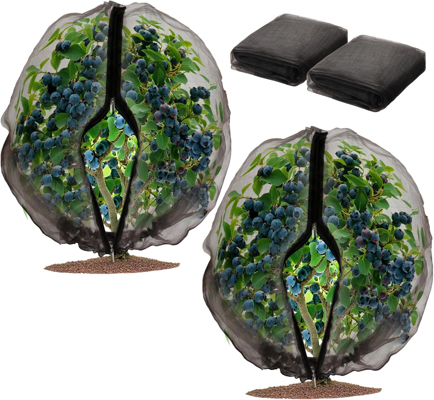 2 Pack Fruit Tree Netting Bags with Zipper and Drawstring, 4 x 5ft Ultra Fine Mesh Garden Netting Plant Cover, Bird Netting for Blueberry Bushes, Fruit Trees, Flowers (Black, 4 x 5 ft)