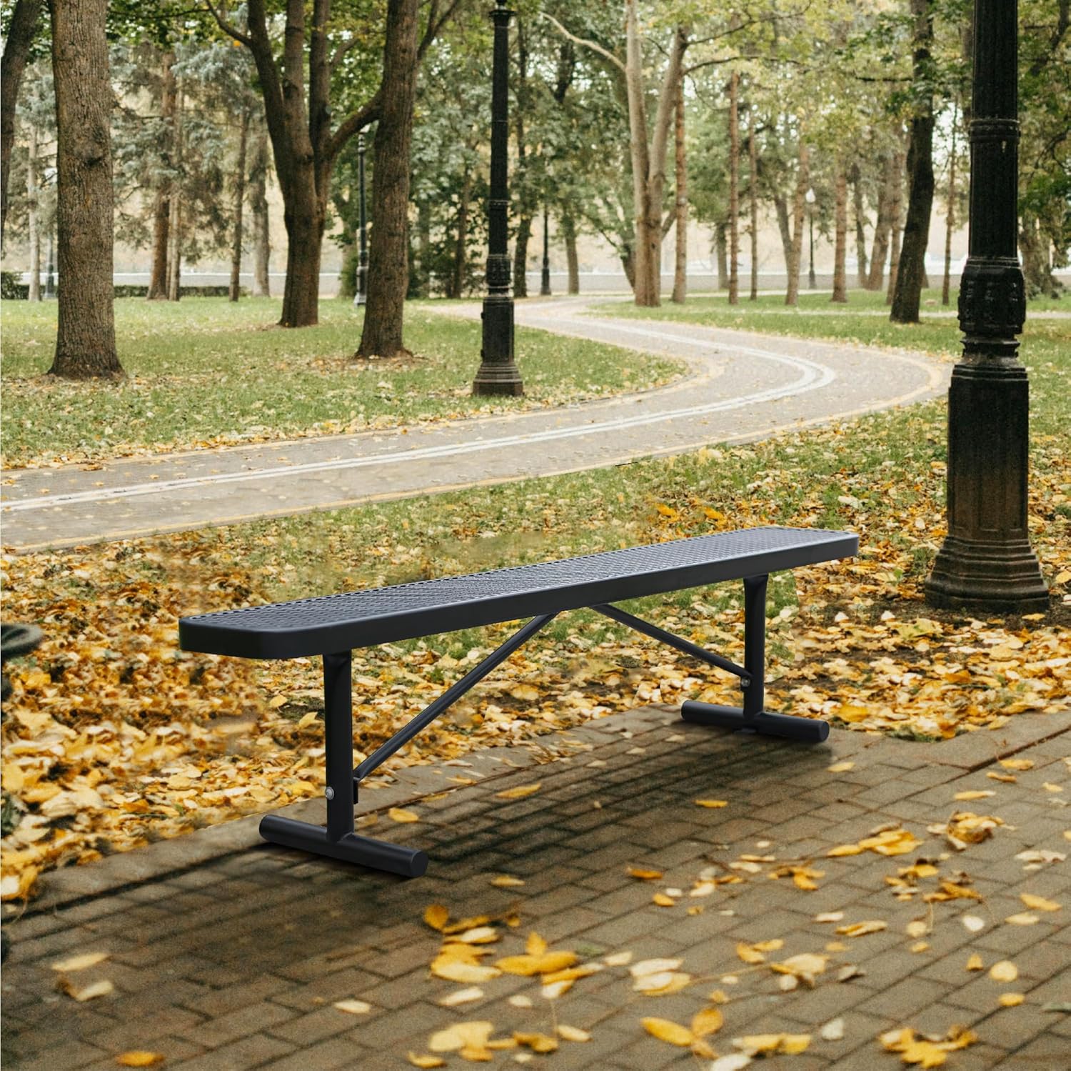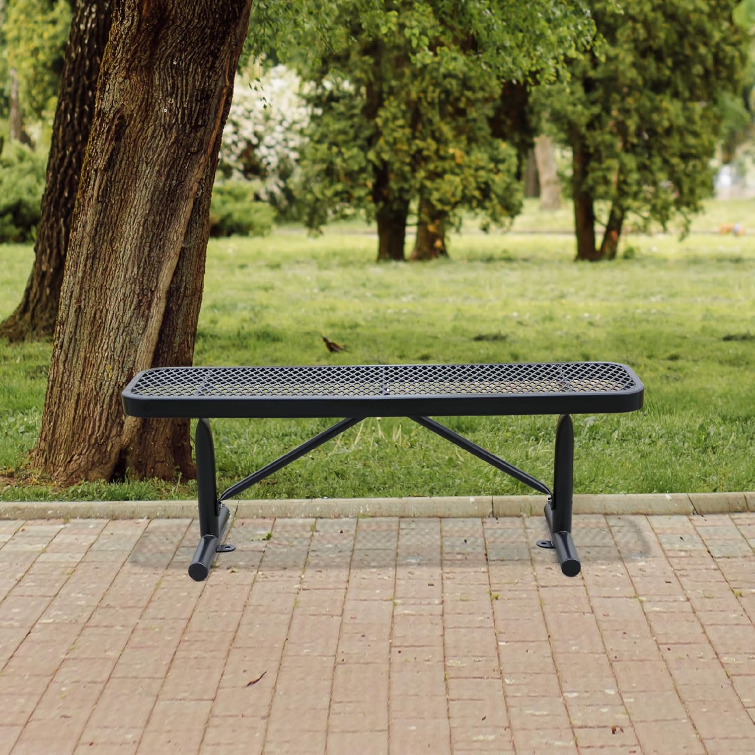 48" L Outdoor Steel Flat Bench, Heavy Duty Metal Park Bench for Outside, Expanded Metal, Commercial Benches Mesh Bench for Shopping Mall, Store, Lawn, Park, Patio, Deck, Garden