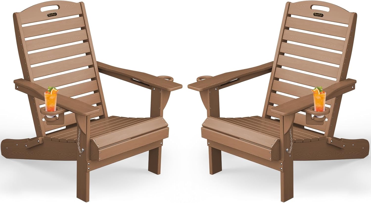 - Weather-Resistant: Made of high-quality HDPE material with wooden texture, SUUNYN sturdy adirondack chair offers excellent weather resistance, resisting fading, splitting, cracking, chipping, peeling, and rotting in harsh conditions. Plus, its easy-to-clean surface and low maintenance