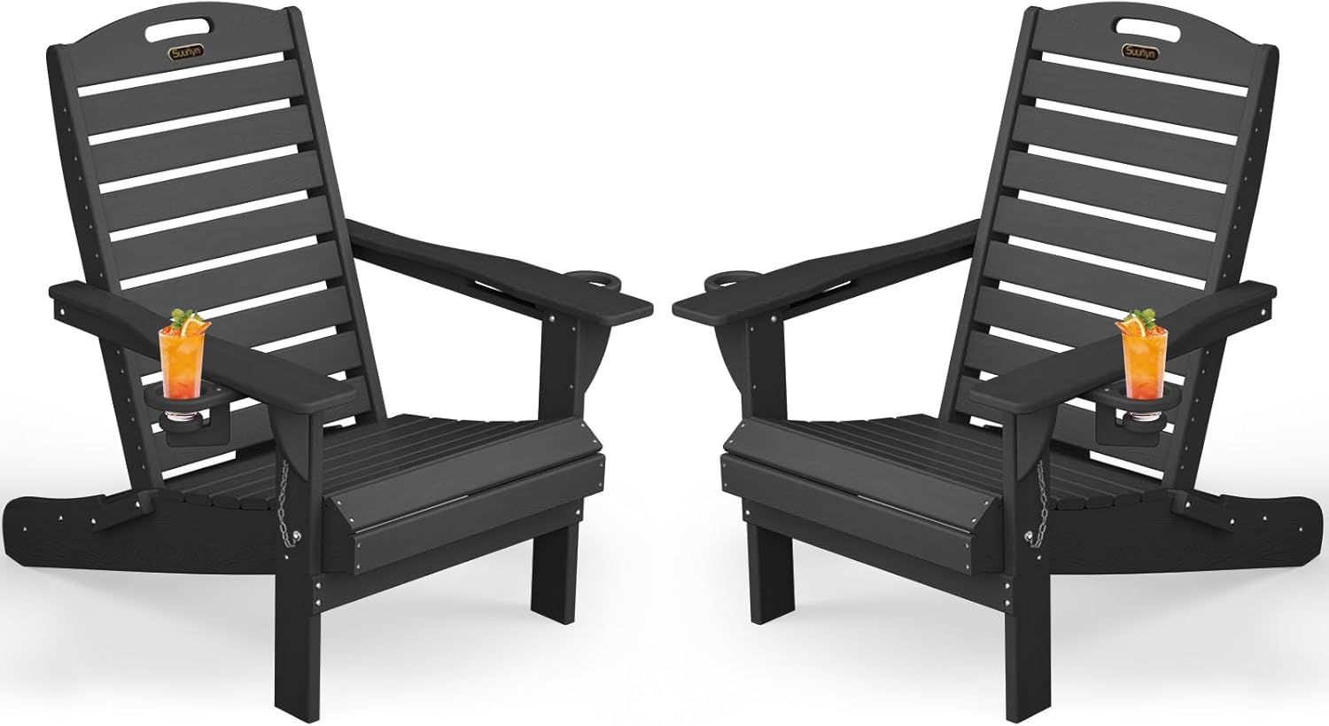 Adirondack Chairs Set of 2, Outdoor Fire Pit Chairs, HDPE All-Weather Adirondack Chairs with Cup Holder, Lawn Chair for Deck, Patio, Garden (Black)