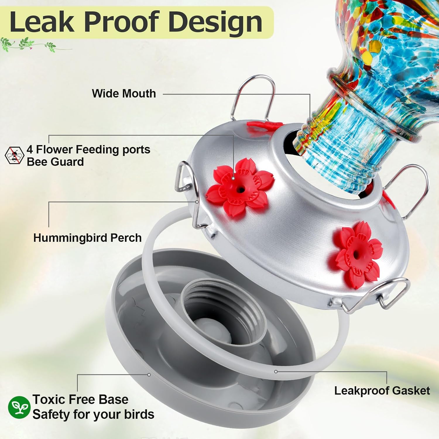 - Leakproof Function: Built-in durable gasket, unique design makes base connection proper and seamless, even when the feeder is jostled by wind or birds landing on it