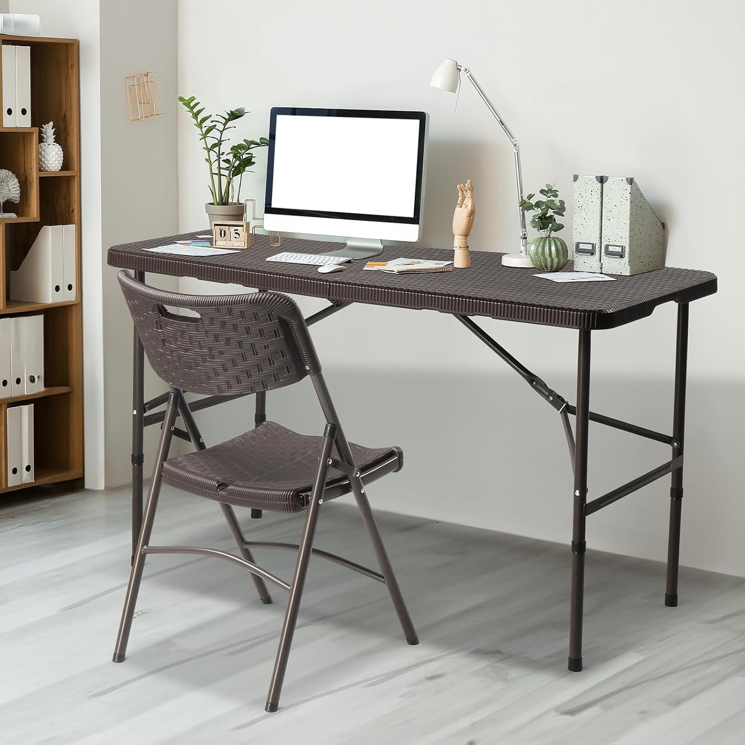VINGLI 4 FT Plastic Folding Camping Table, Portable in/Outdoor Party Picnic Dining Desk,Garden Soccer Multipurpose Entertaining Activities, Brown