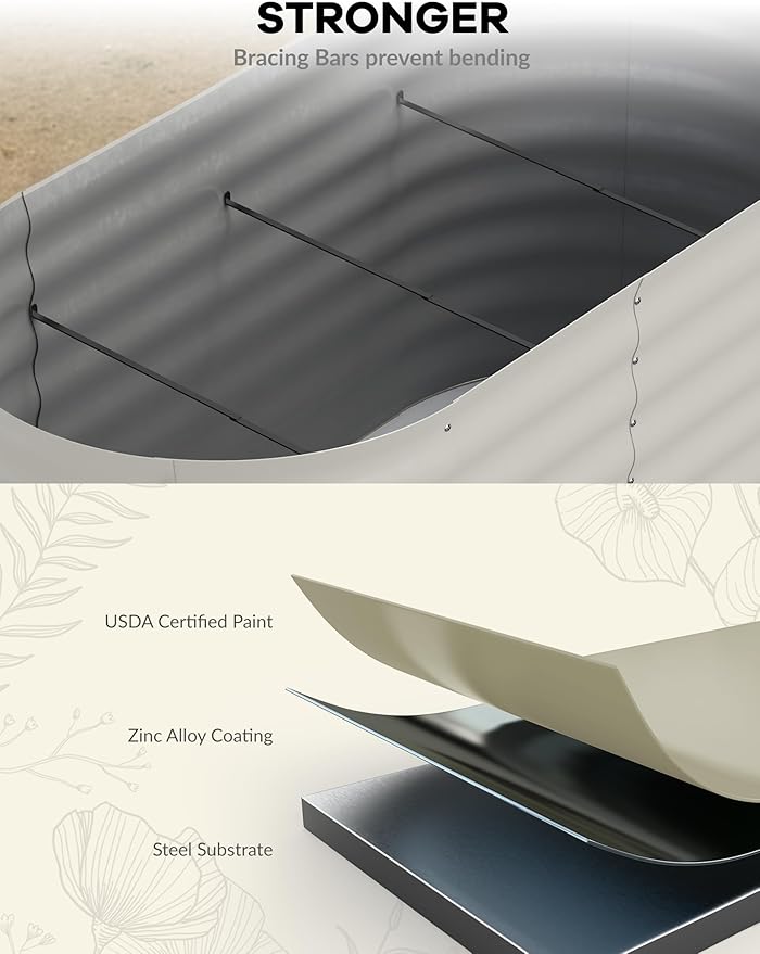 - [Open-bottom Design] The open-bottom design of the planting bed promotes root growth, improves drainage, enhances soil health, regulates temperature, reduces weed competition, facilitates maintenance, and fosters an environment for sustainable plant growth