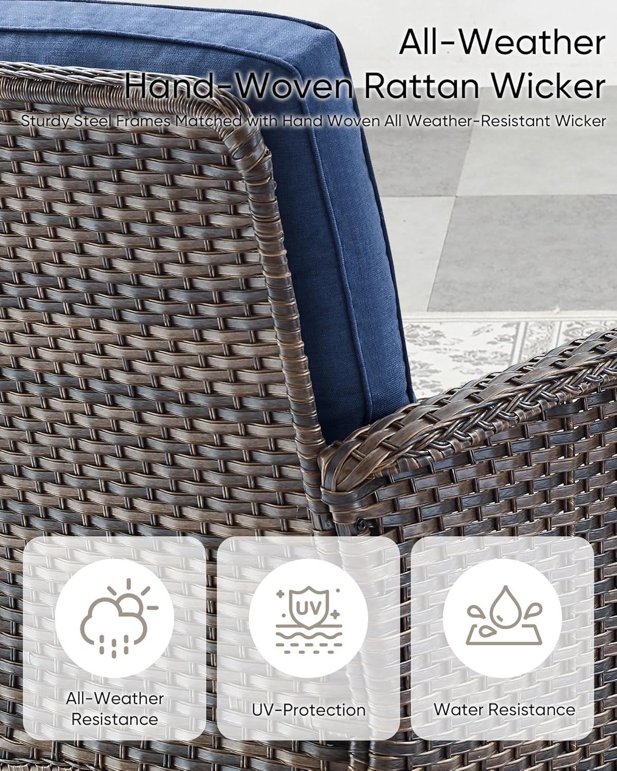 - Multi combination and function:This series of outdoor furniture set includes a variety of combinations, including functions such as swivel and glider chairs,rocking chairs,glider loveseat,suitable for a variety of scenarios,garden,balcony,deck,patio,porch,poolside,yard,corridors,sunrooms,etc.