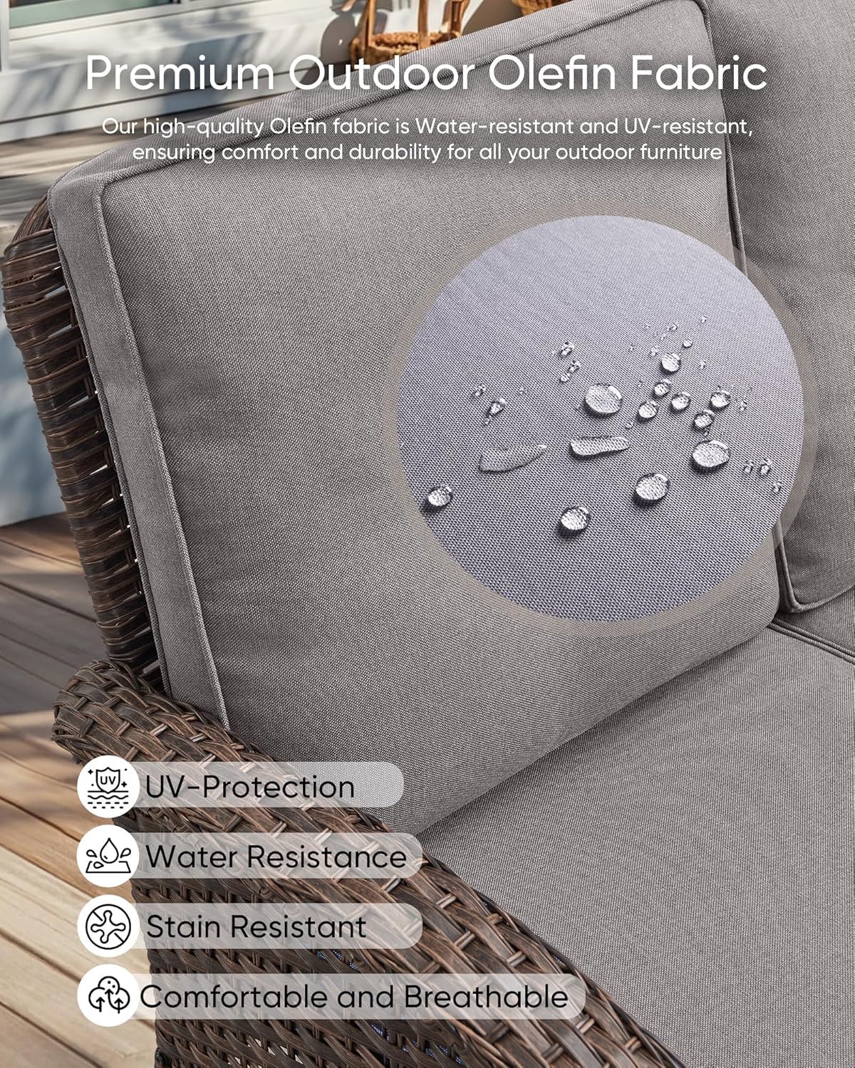 - Multi combination and function:This series of outdoor furniture set includes a variety of combinations, including functions such as swivel and glider chairs,rocking chairs,glider loveseat,suitable for a variety of scenarios,garden,balcony,deck,patio,porch,poolside,yard,corridors,sunrooms,etc.
