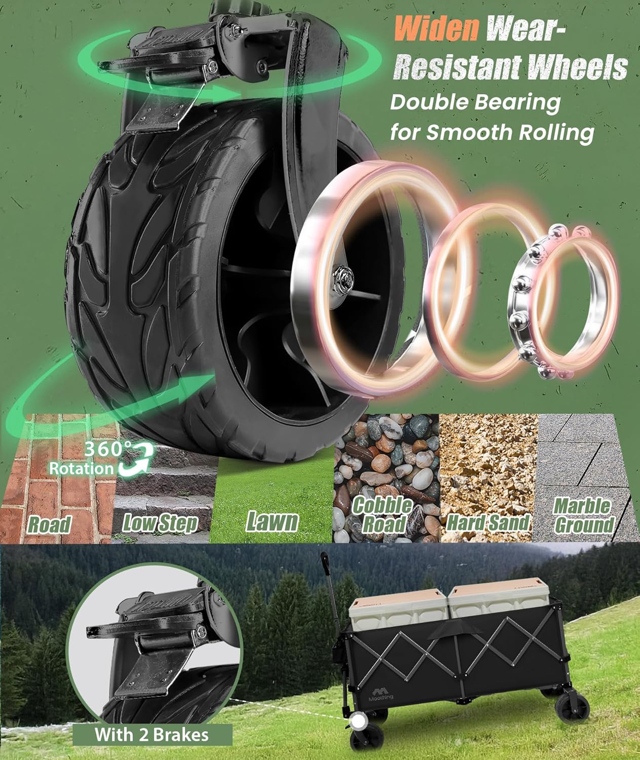 - ๐๐ง๐ง๐จ๐ฏ๐๐ญ๐ข๐ฏ๐ ๐๐ญ๐๐๐ซ๐ข๐ง๐ ๏ผ ๐๐ซ๐ ๐จ๐ง๐จ๐ฆ๐ข๐ ๐๐๐ง๐๐ฅ๐: Our foldable wagon with wheels feature an advanced stable steering structure that ensures smooth, straight-line movement, eliminating side-to-side sway and wheel collisions. The adjustable handle allows for 90ยฐ rotation, accommodating various heights. Its rebound mechanism keeps the handle upright, ready for use without the need to bend over