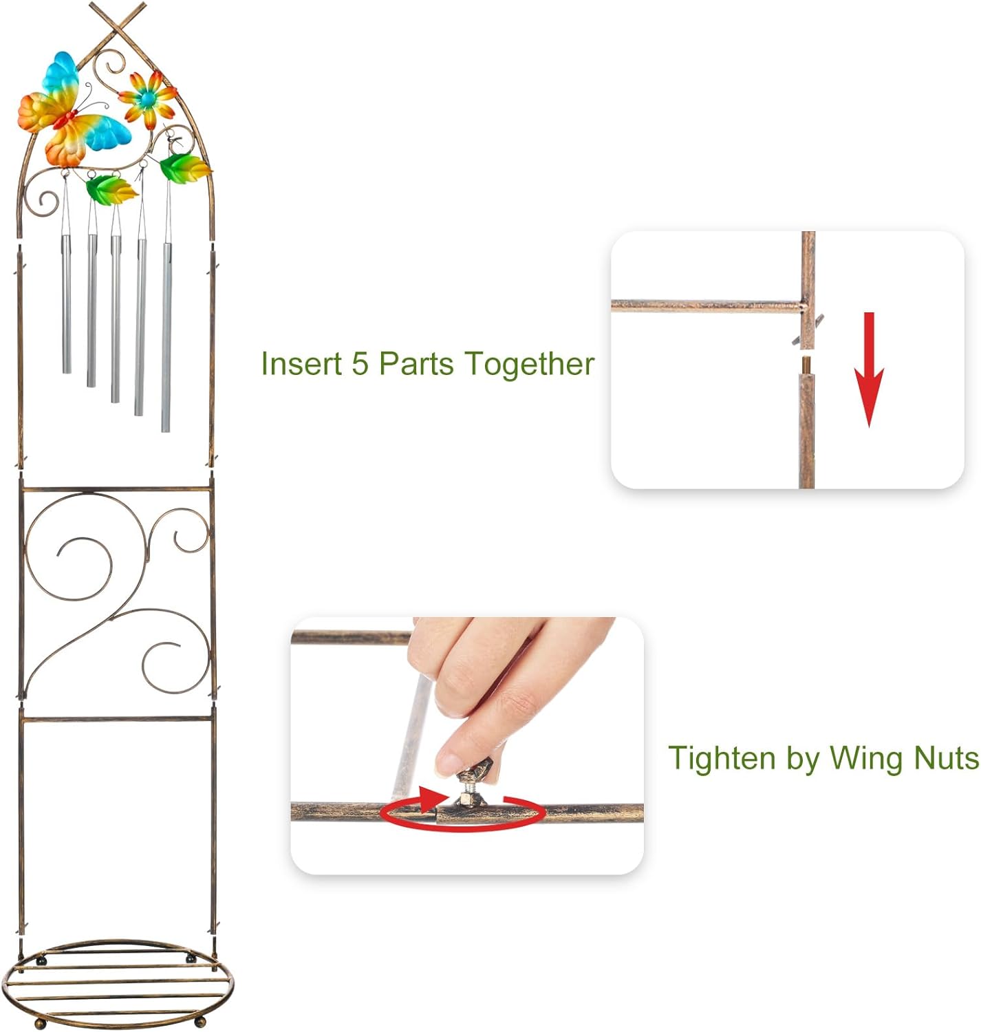 Plant Stands with Garden Trellis, 48” Metal Standing Wind Chimes Plant Pot Trellis with Butterfly for Garden Patio Backyard Climbing Plants Outdoor Decor