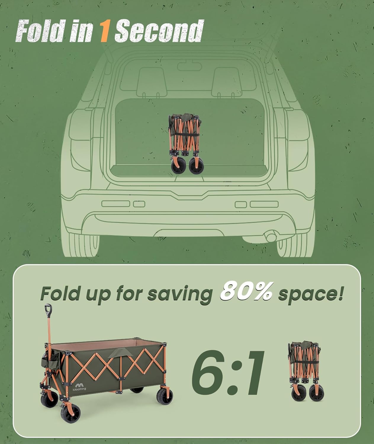 - ๐ฒ:๐ญ ๐๐๐ญ๐ซ๐๐๐ญ๐ข๐จ๐ง ๐๐๐ญ๐ข๐จ: We understand the importance of efficiency, which is why our wagon cart offers an excellent retraction ratio. This means that when folded, the lounge wagon takes up minimal space, yet expands to provide ample room for your belongings, making folding wagon carts the perfect balance between portability and functionality