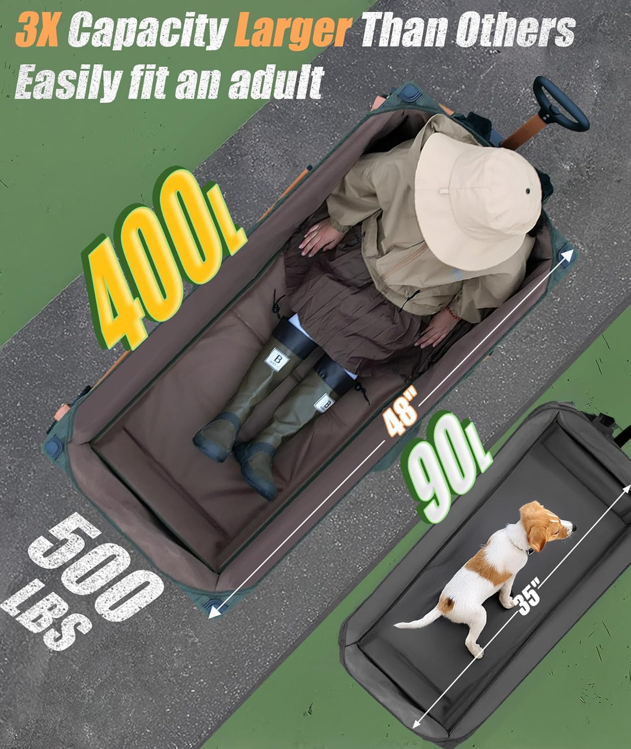 48โL Foldable Wagons Carts Extended, Collapsible Folding Wagon 500lbs Heavy Duty, 320L Large Beach Wagon, Utility Wagon with All Terrain Big Wheels for Sports, Camping, Grocery, Garden, Green