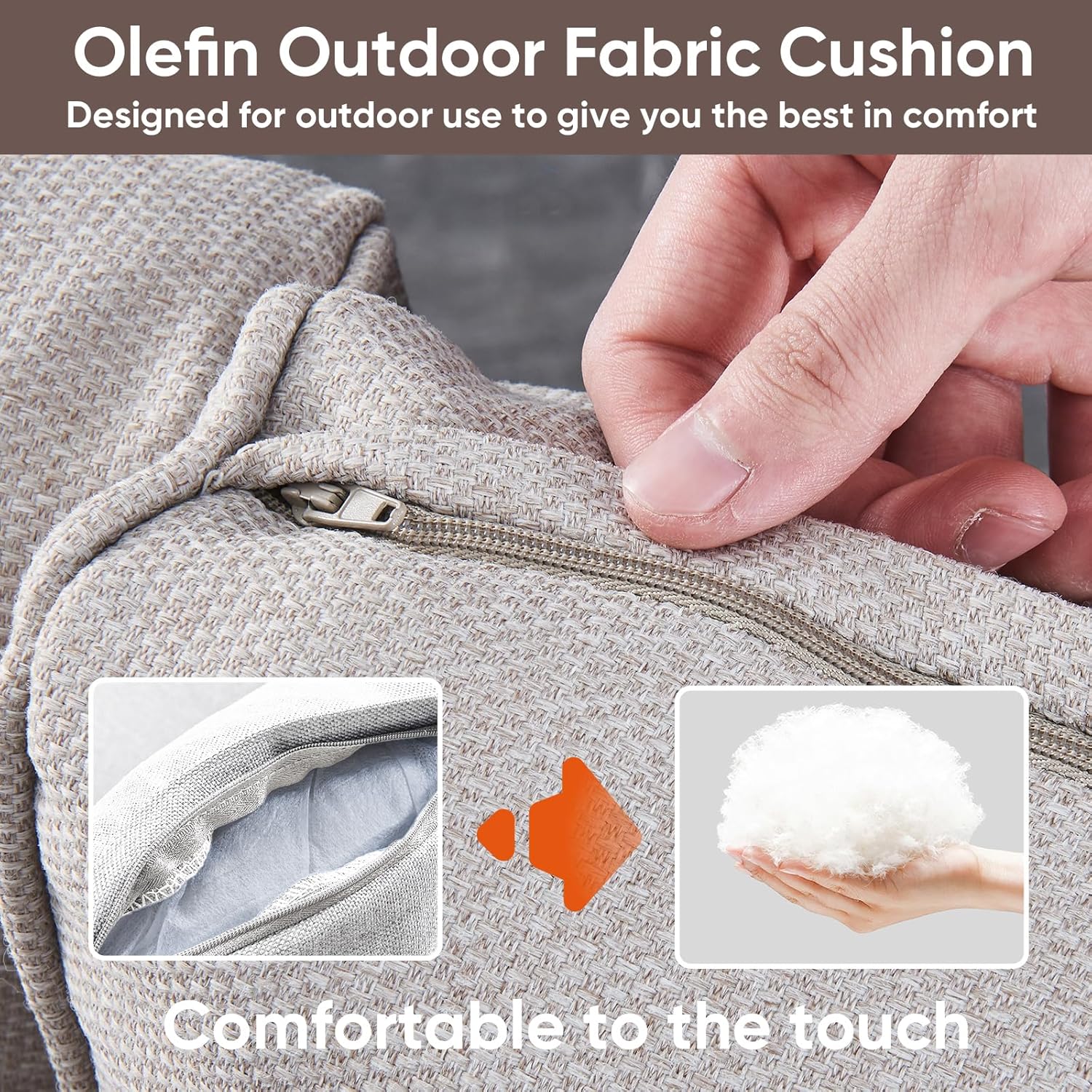 - Comfort Thick Cushions:Our cushions are made of high-quality olefin fabrics that provide excellent UV protection and water repellent function,Filled with a high-density 4" sponge to stay fluffy and non-deformation,Provide soft and comfortable seating experience, removable cover design is easy to clean.