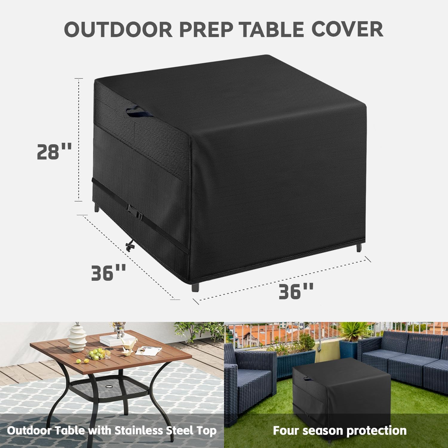 - EASY ON & OFF - The comes with handles for easy fitting and removal, Simply place the waterproof cover over your outdoor patio square dining table and tighten it with the drawstring and click-close straps for extra security