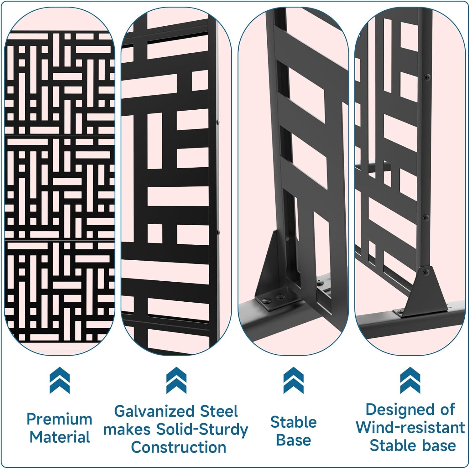 - Durable Construction: Built with thickened steel and a powder-coated finish, our metal privacy screen is designed to resist sun damage and water, ensuring longevity and durability. Ideal for withstanding varied weather conditions, from intense sun to heavy rain, without rusting or fading.