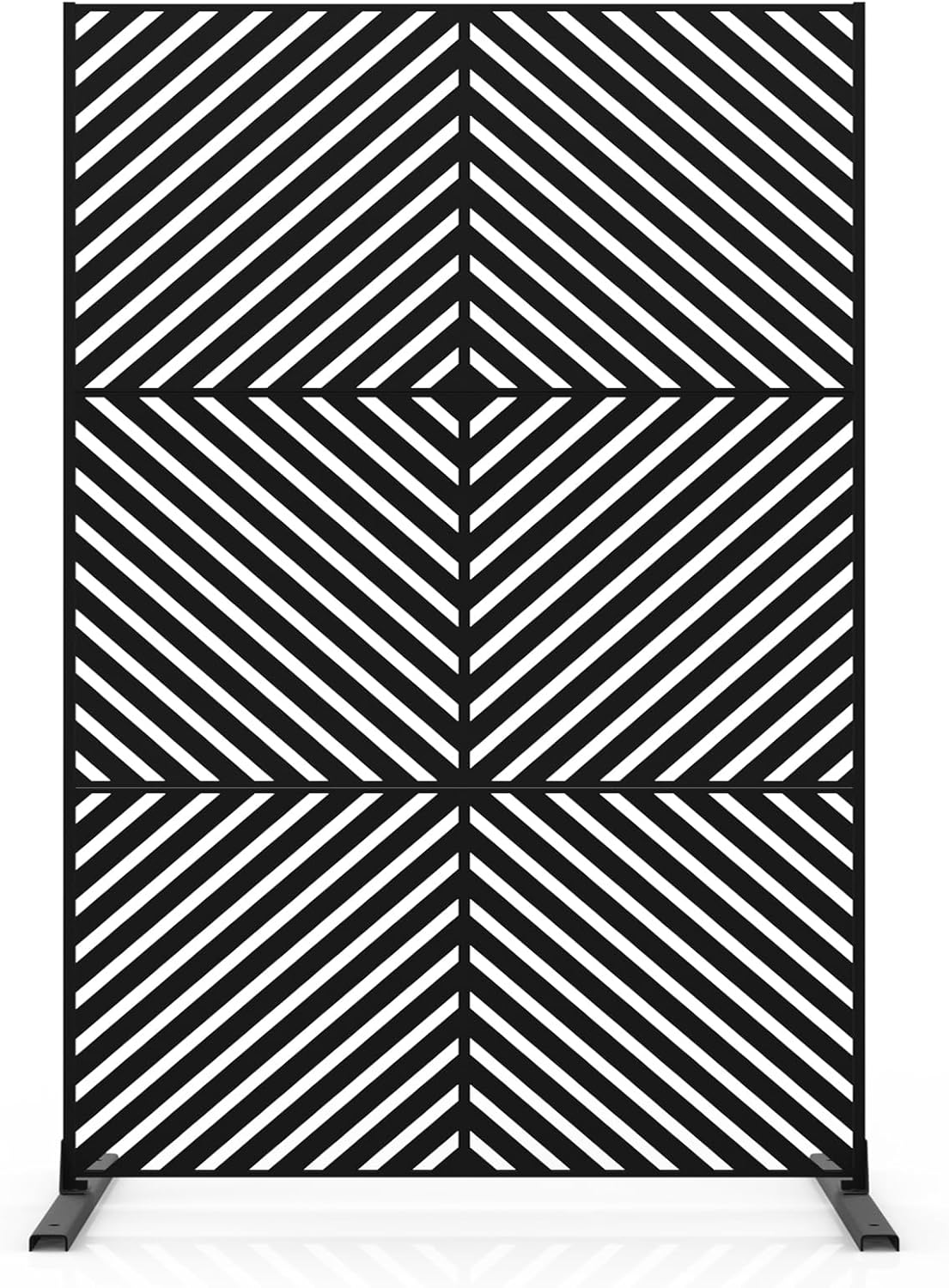 Metal Privacy Screen 72" H x 47.2" Decorative Outdoor Privacy Screen Privacy Panel with Stand for Balcony Deck Patio Lawn Garden, Privacy Fence (Black-Arrow)