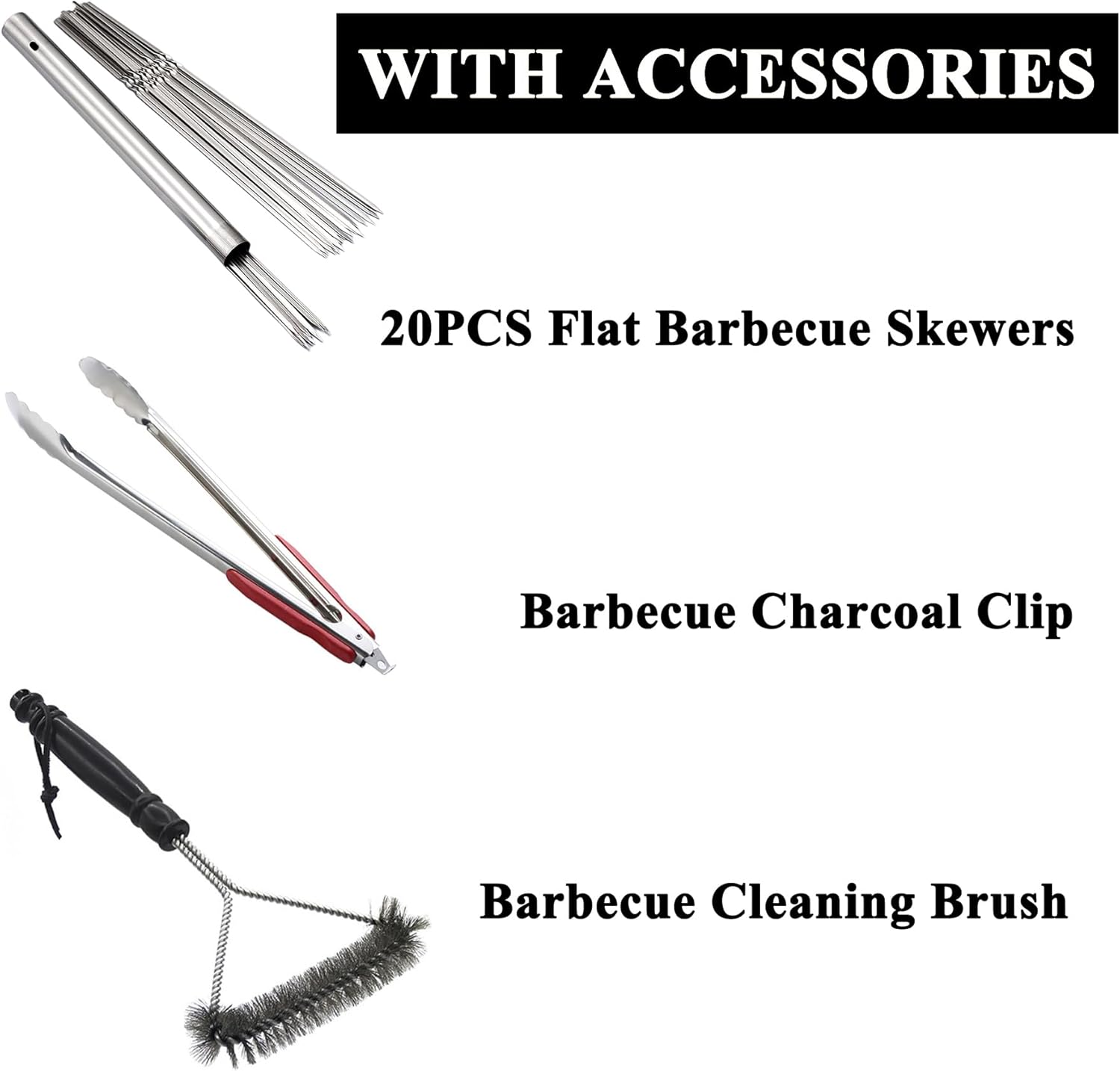 - 【Wide Application】The charcoal grills are perfect for any Skewers, Shish Kebab, Lamb Kebab, Shashlik, Japanese yakitori grill, Malaysian Satay, Thai Satay,Chinese Lamb Skewer and all other steaks, fish and vegetables, etc.Suitable for outdoor smoked cooking, picnics, tailgating, camping grill or on the patio,backyard, garden, traveling, park, beach.