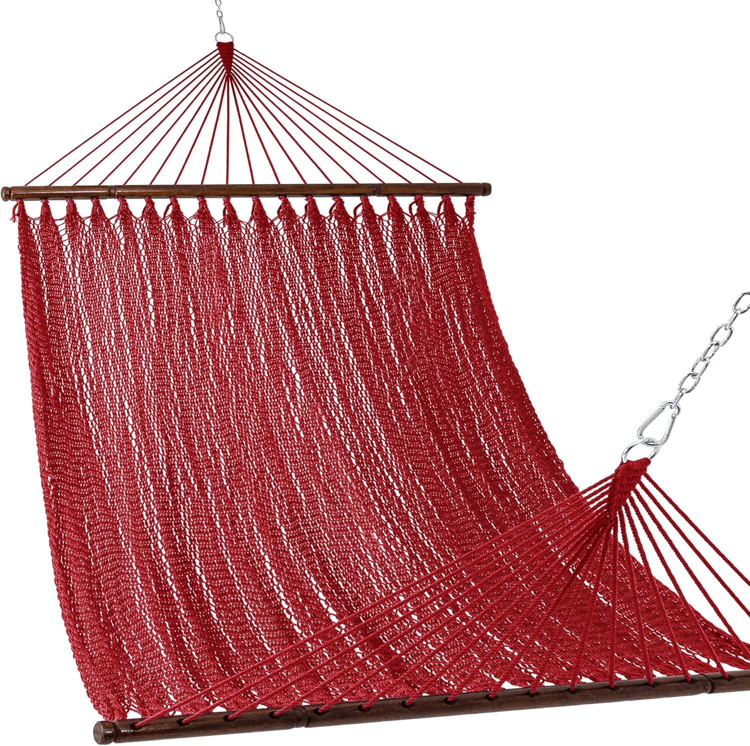 Lazy Daze Hammocks 10.5 FT Double 2 Person Caribbean Rope Hammock, Hand Woven Polyester Hammock with Spreader Bars, for Outside Outdoor Backyard Patio Poolside,450 LBS Capacity,Red