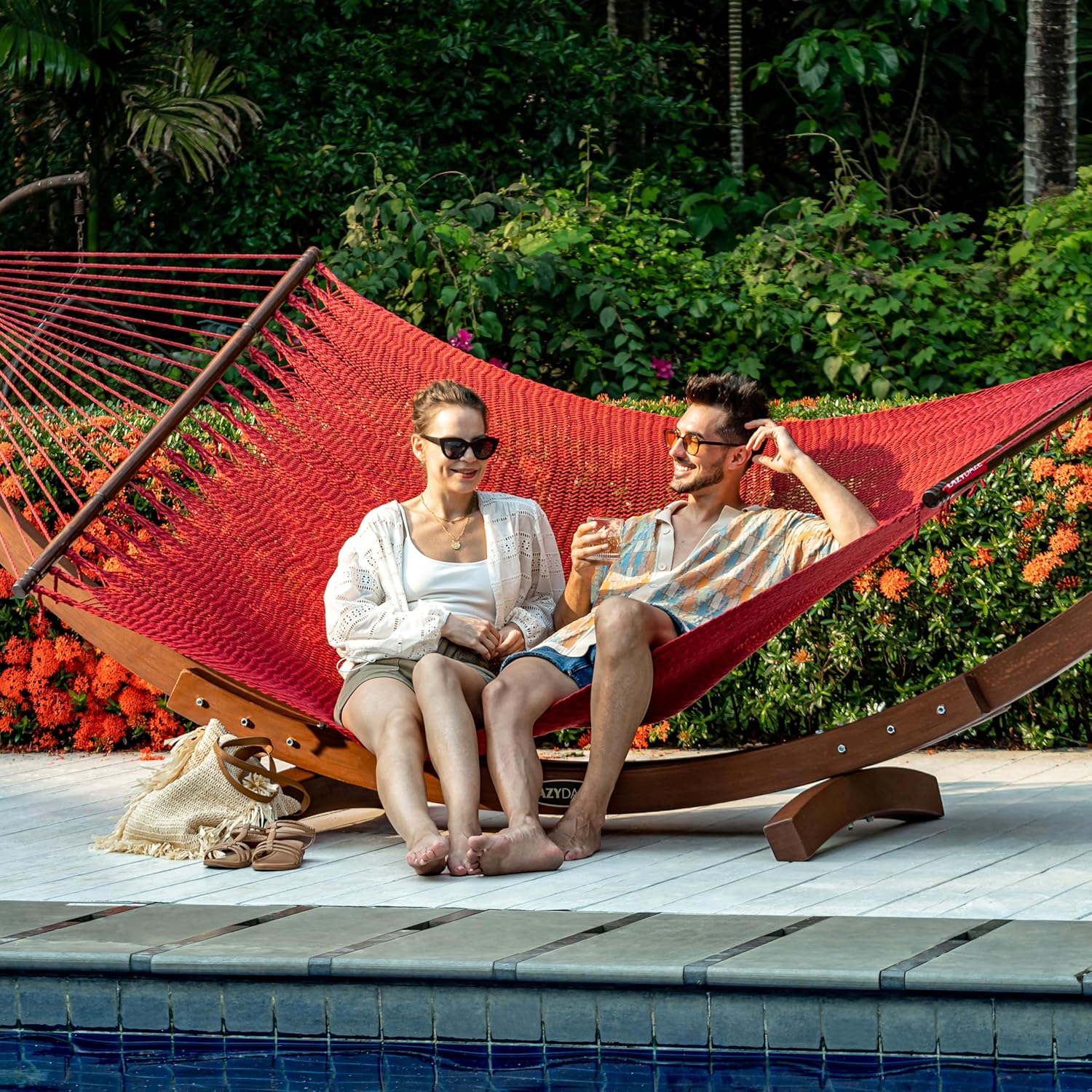 - Caribbean Hammock: Lazy Daze Caribbean Rope Hammock is hand-woven with polyester rope which is more comfy and durable than other rope hammocks; The breathable tight mesh design eliminates the need for knotting inside the rope bed itself; It does not only provide the comfort,but also maintain the air circulation while relaxing on our hammock