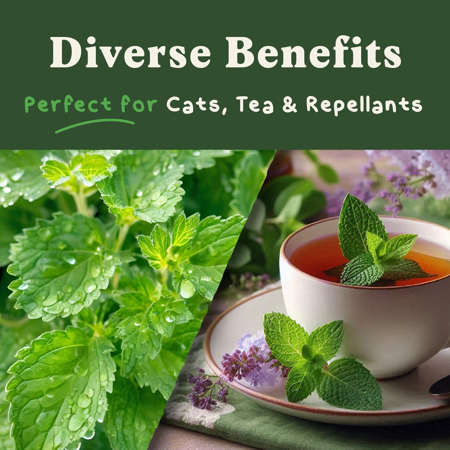 - Fresh Flavor for Your Feline Friends – Treat your cats to the delightful effects of homegrown catnip. Perfect for creating stimulating toys, sprinkling on scratching posts, or offering as a natural stress reliever for your pets. Did you know catnip is also beneficial for people? Steep yourself a soothing cup of tea or add to soups and salads for a mild minty flavor.