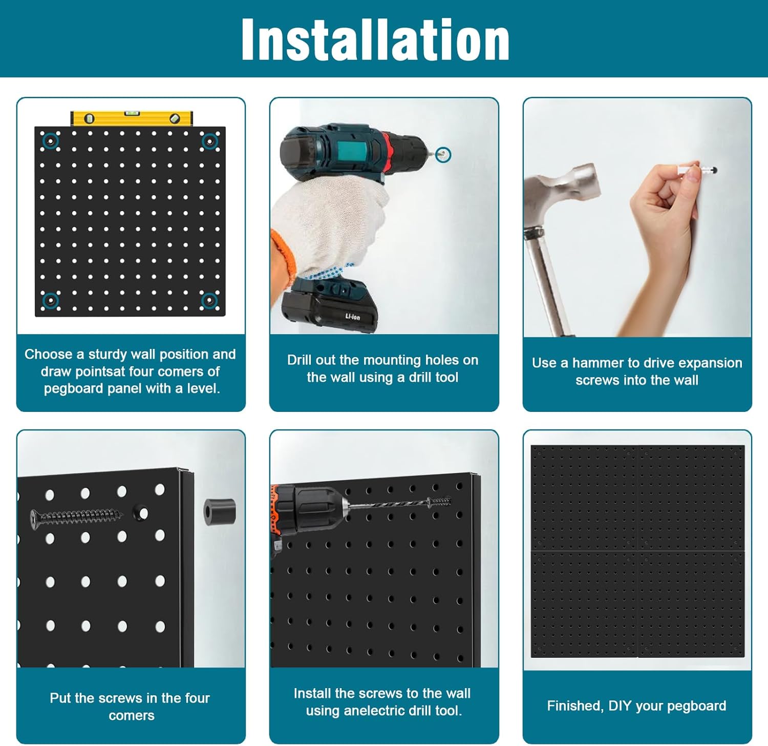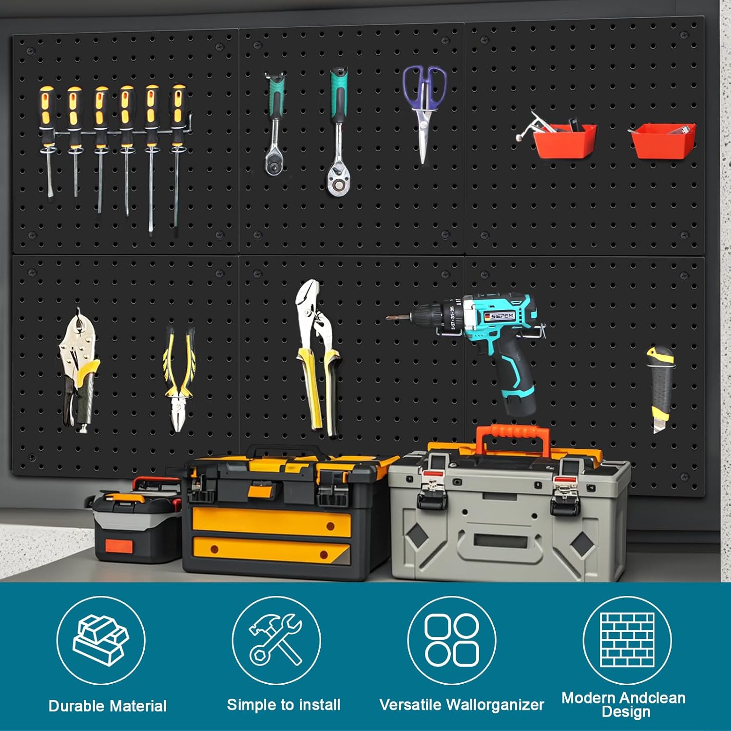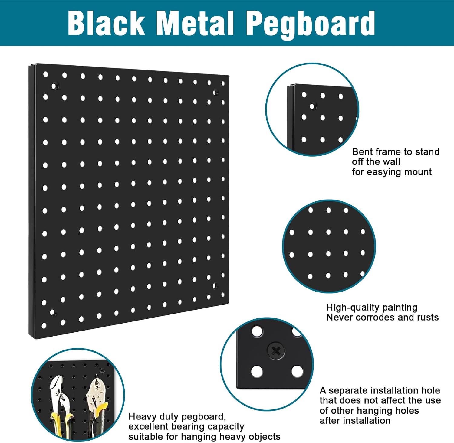 Peg Board,Steel Organization Panels, Ideal for Garage Tool Storage, Office Organization, Craft Room, Kitchen,Pack of 6(Black, 6-12X12)