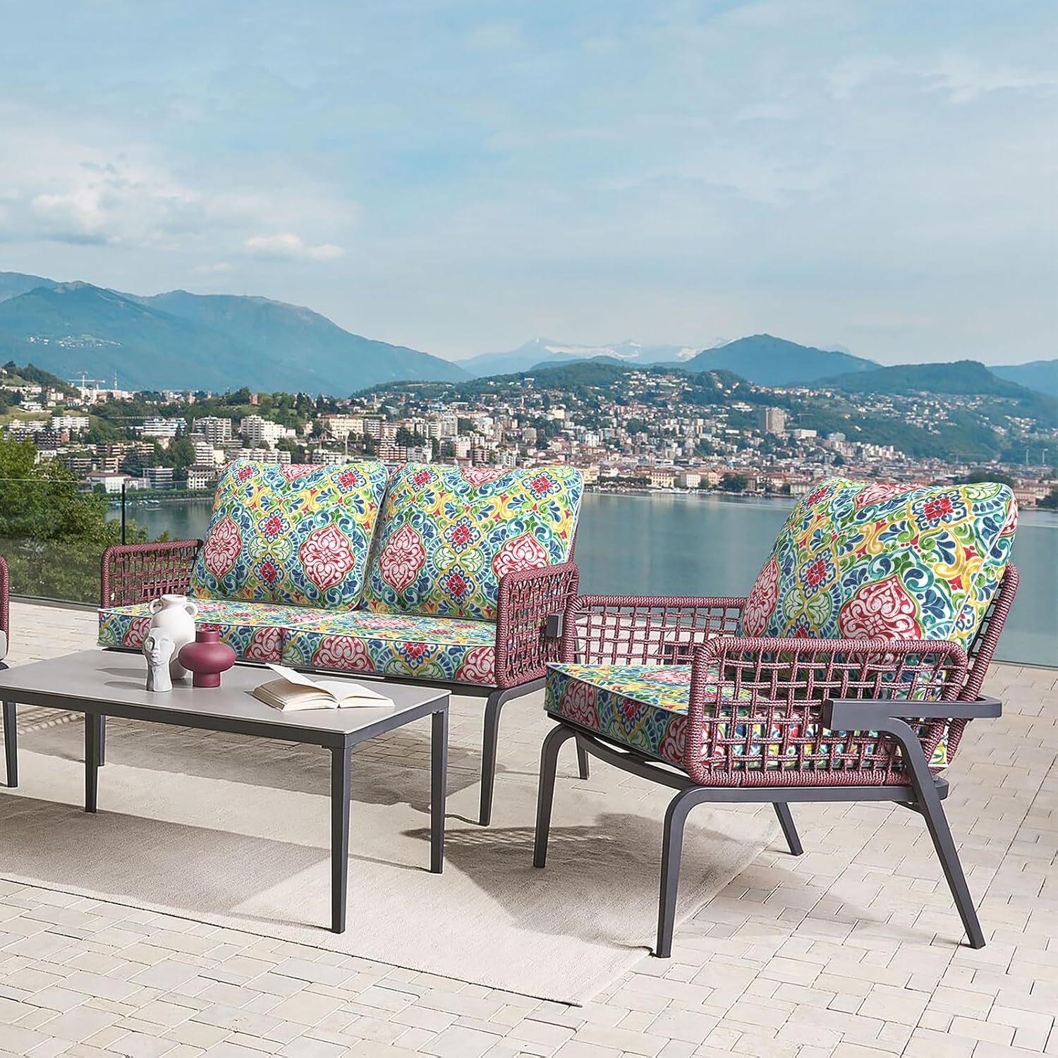 - ⭐Material: Made of 100% durable polyester fabric and soft filling material. It’s water repellent and fade-resistant. Won’t fading under the direct sunlight over 500 hours. Cushions are filled with 28D high resilient foama, overstuffed construction for enhanced comfort and longevity.
