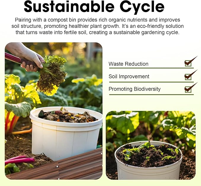 - 【Convenient & Organic】The height of the galvanized raised garden bed greatly reduces the burden of bending over to plant, making it easier for you to perform routine maintenance such as watering, fertilizing and weeding. In addition, our beds can be used with compost bins to effectively utilize kitchen waste and enjoy an organic lifestyle!