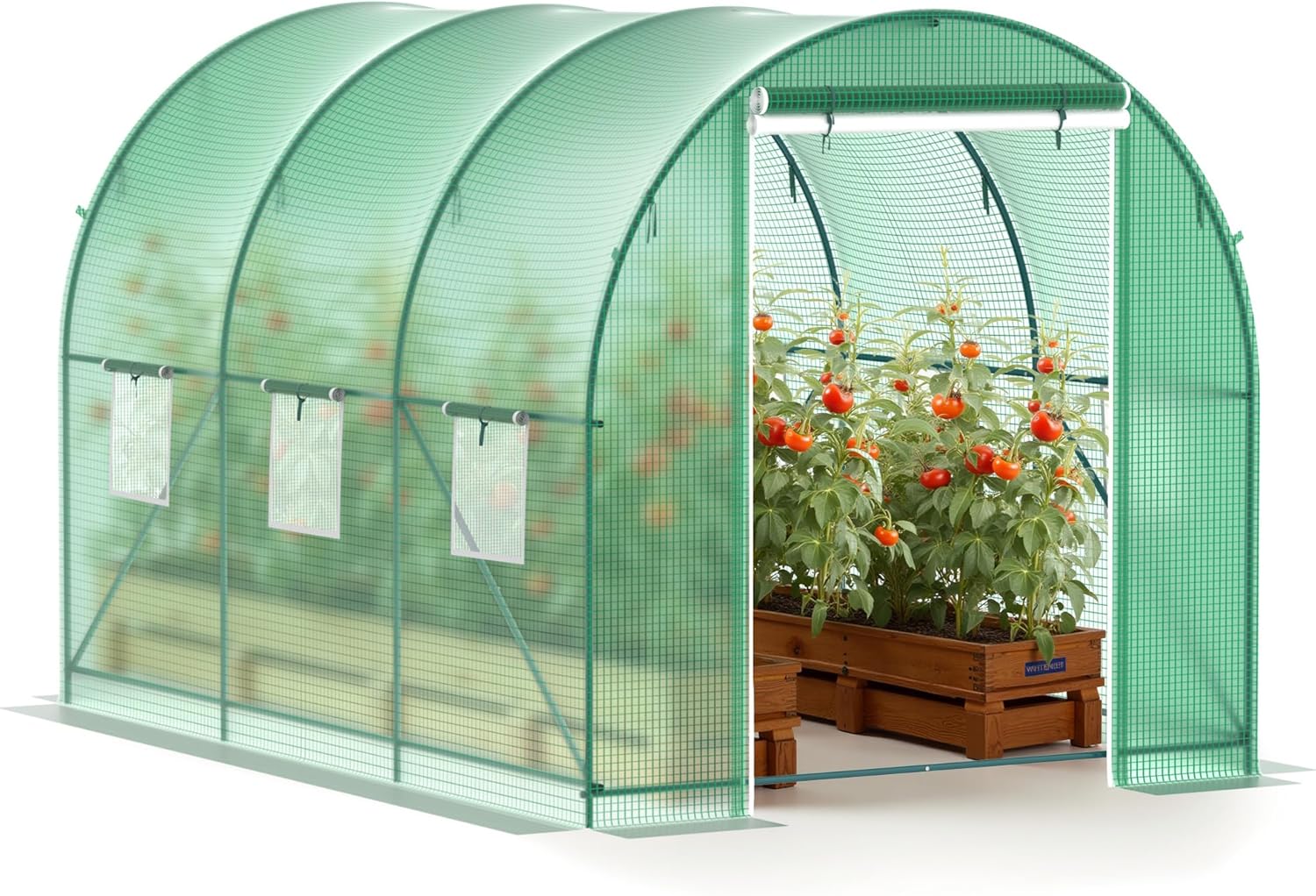 Greenhouse, 10’x7’x7’ Walk-in Greenhouse Heavy Duty Tunnel Green House with 6 Ventilated Mesh Windows & Zippered Roll-up Door, Large Plant Garden Hot House Outdoor with Reinforced Frame
