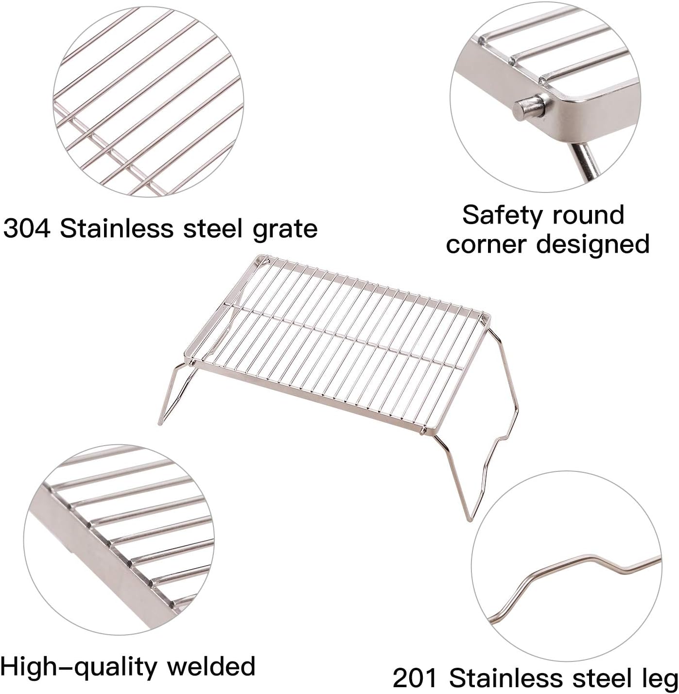 REDCAMP 13.6" Small Folding Campfire Grill, Heavy Duty Portable Camping Grill Grate with Carrying Bag for Outdoor Cooking Camping Hiking Backpacking Picnic BBQ