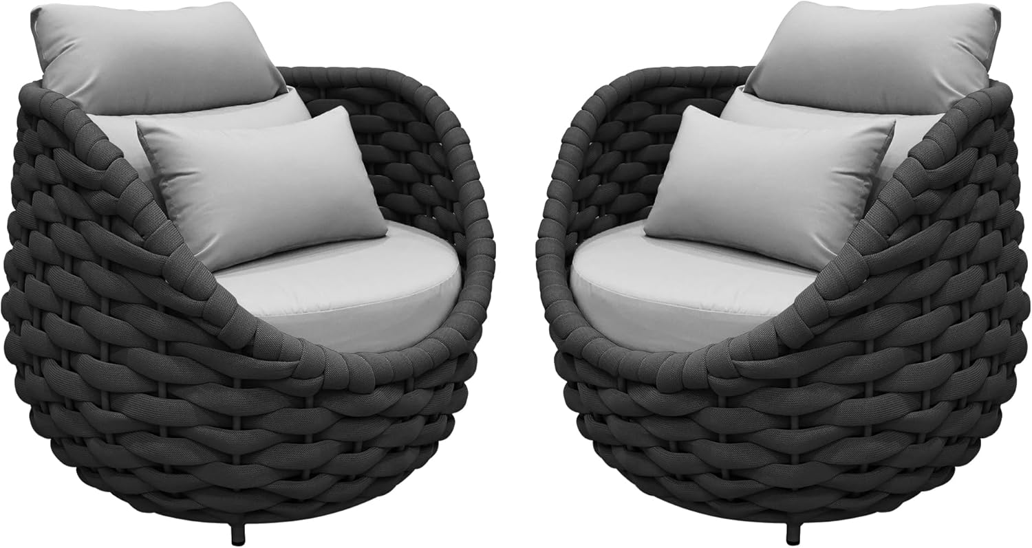 TWT Patio Sofa Set of 2 All-Weather Textilene Rope Balcony Furniture with Cushions & Pillows,Metal Armchairs Outdoor Patio Furniture Set for Indoor, Balcony, Backyard, Deck, Poolside