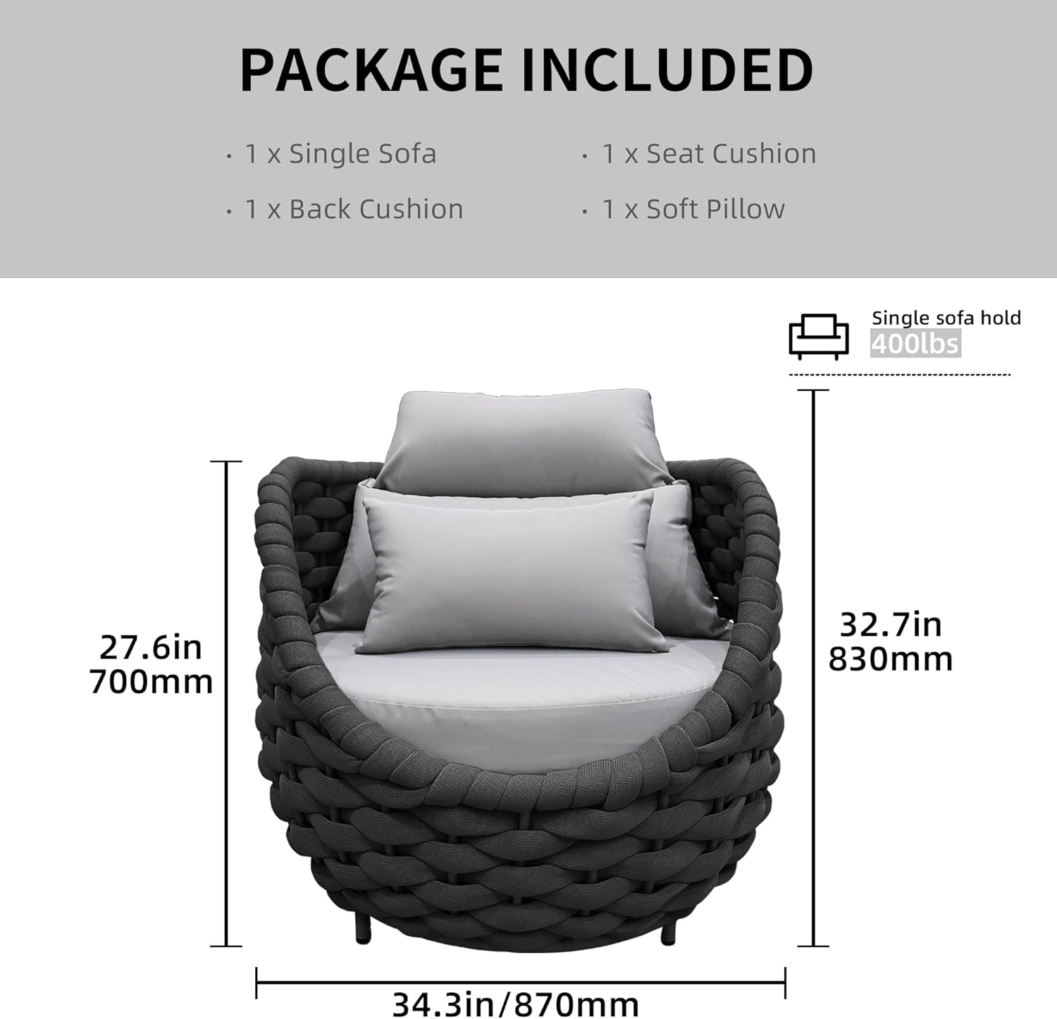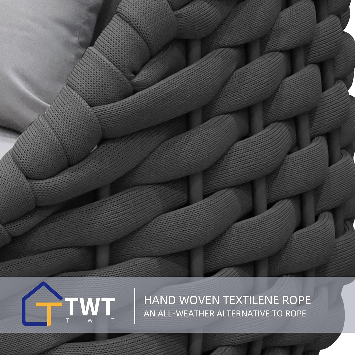 - NO required assembly & easy to clean:Our outdoor couch NO required assembly, just take them out and use. TWT patio chairs’ seat are easy to clean and polyester rope relatively soft. No need to take more extra special care to maintain patio couch