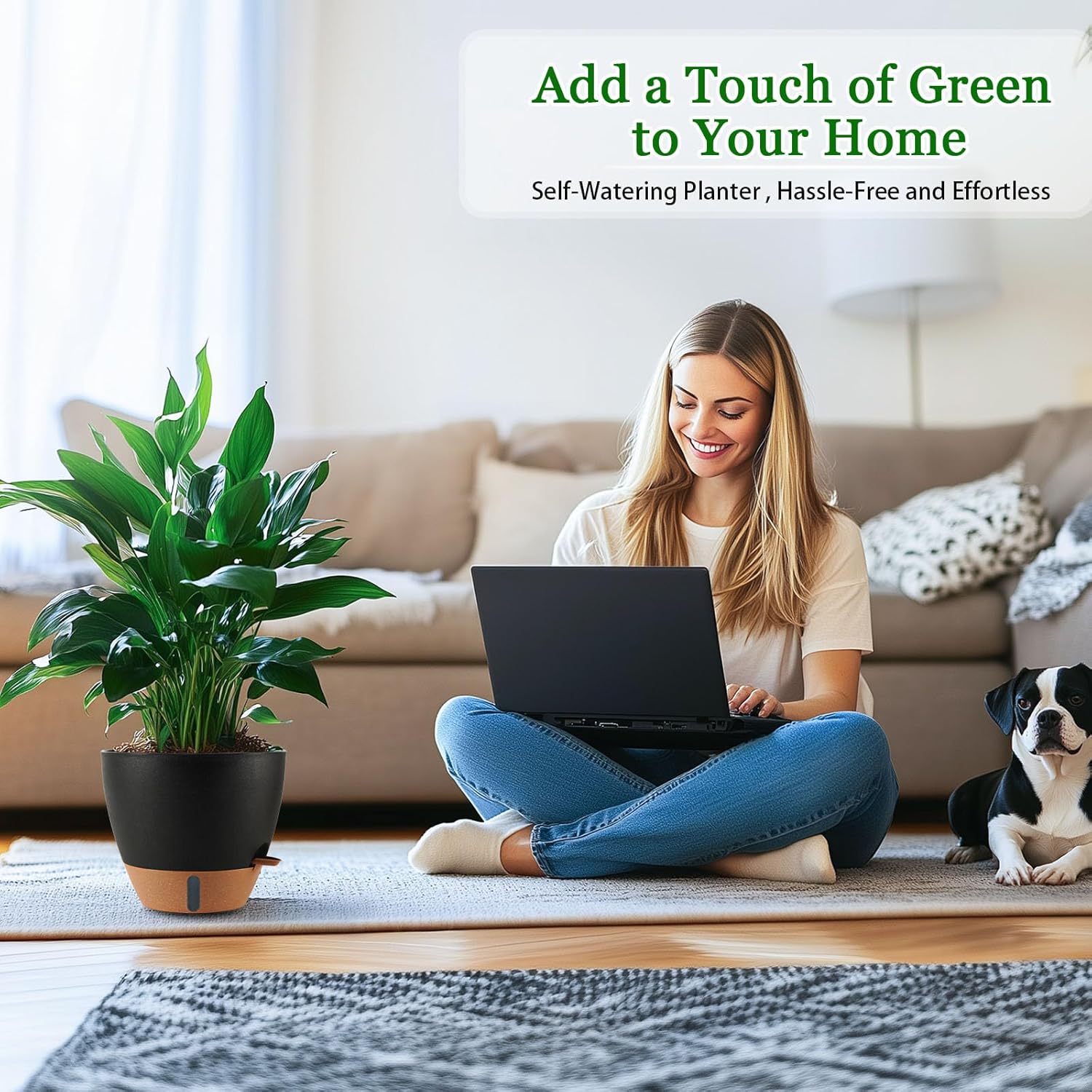 - 🌿 【Self-Watering Feature】The Fielda 10 Inch Plastic Planter comes with a built-in self-watering system that uses absorbent cotton wicks to draw water from the bottom tray into the planter. This ensures your plants stay hydrated with less effort, saving you from frequent watering. Whether you're a busy gardening enthusiast or away for long periods, you can easily maintain your plants' moisture balance, ensuring they get the right amount of water and nutrients.