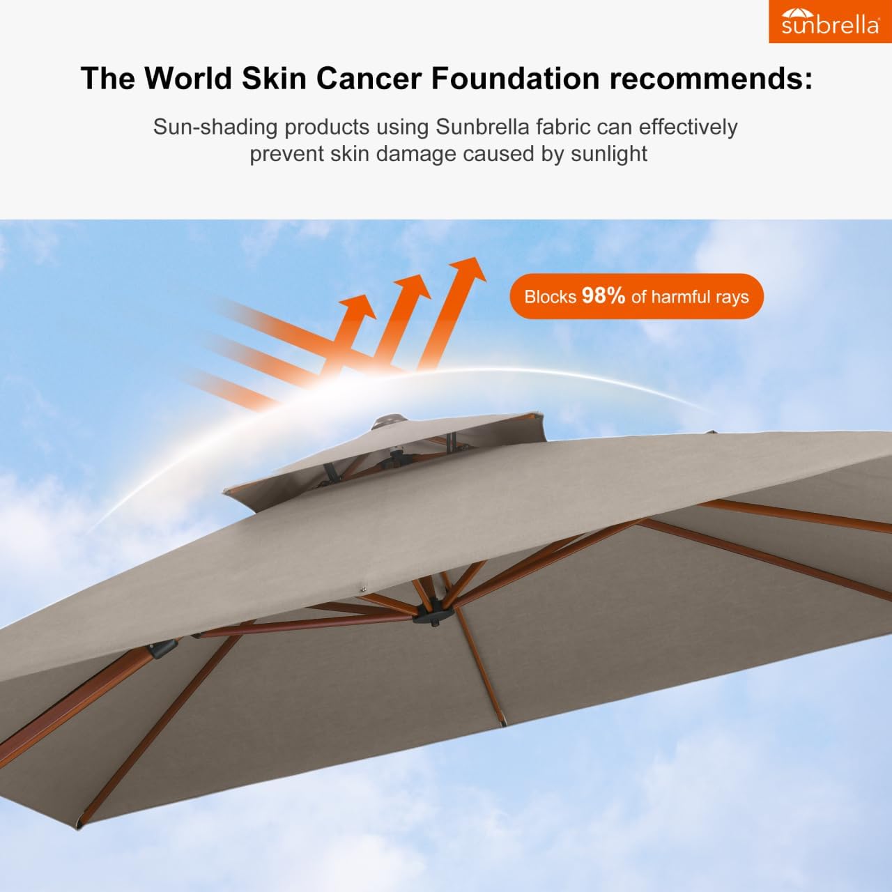 PURPLE LEAF 12' X 12' Patio Large Cantilever Umbrella Outdoor Square Wood Umbrellas Offset Umbrella Heavy Duty Sun Umbrellas for Garden Deck Pool, Heather Taupe