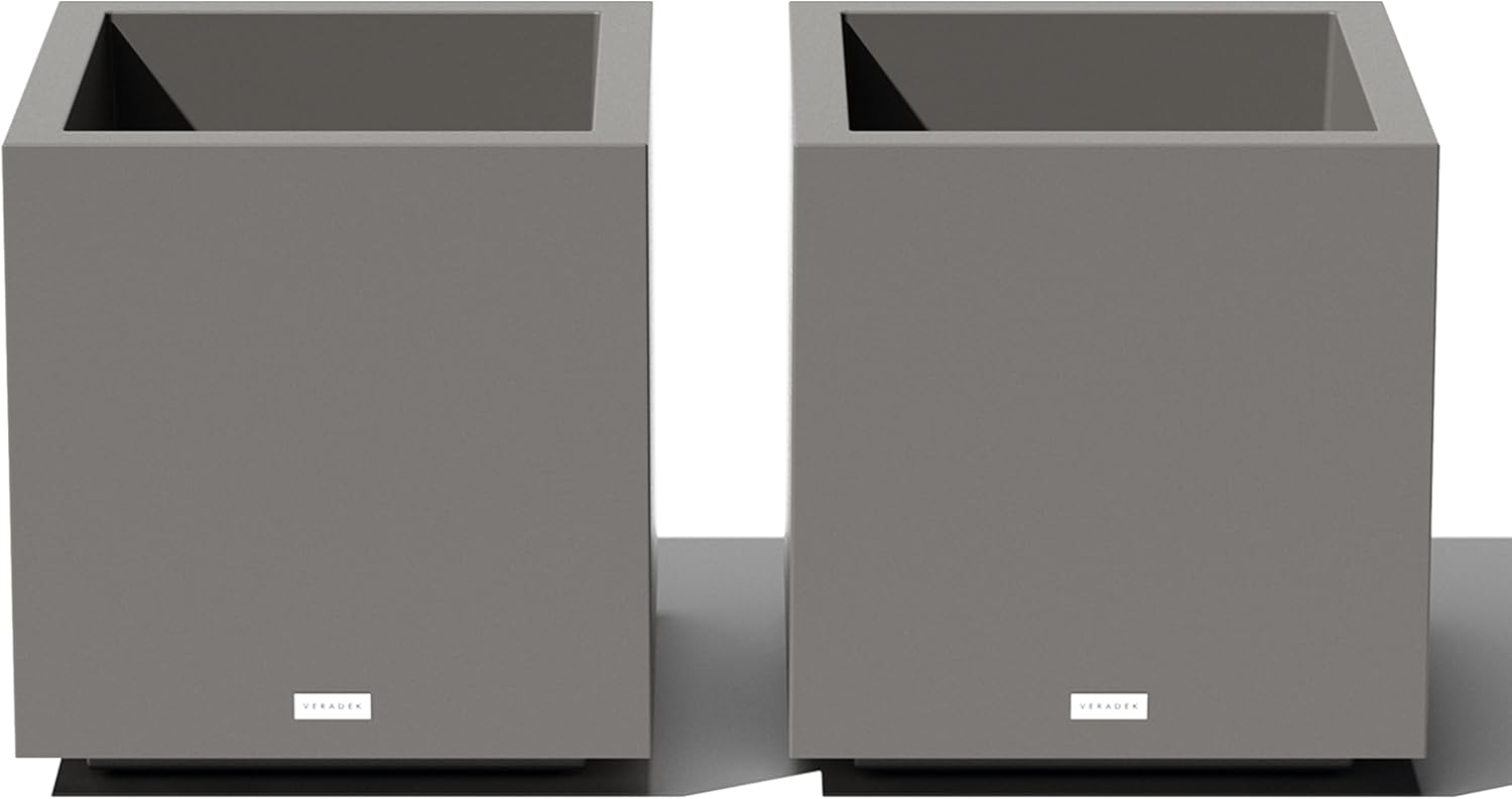 Veradek Block Series Cube Plastic Planter - Large Square Planter for Indoor or Outdoor Patio/Garden | Durable All-Weather Use with Drainage Holes | Modern Décor for Tall Plants, Trees, Flowers