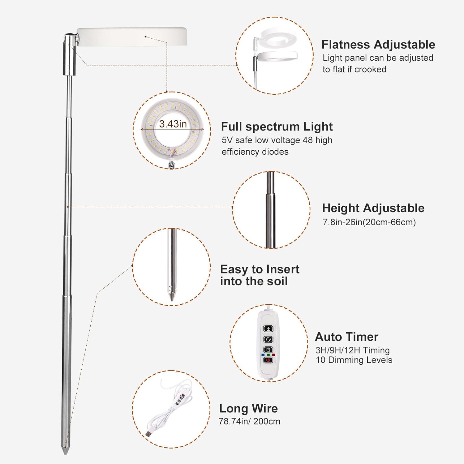 Grow Lights for Indoor Plants Small Potted - Full Spectrum, Auto 3/9/12H Timer, 10-Level Dimming & Adjustable Height - Compact Grow Light for Succulents, Herbs, Foliage in Home/Office (White,1PACK)