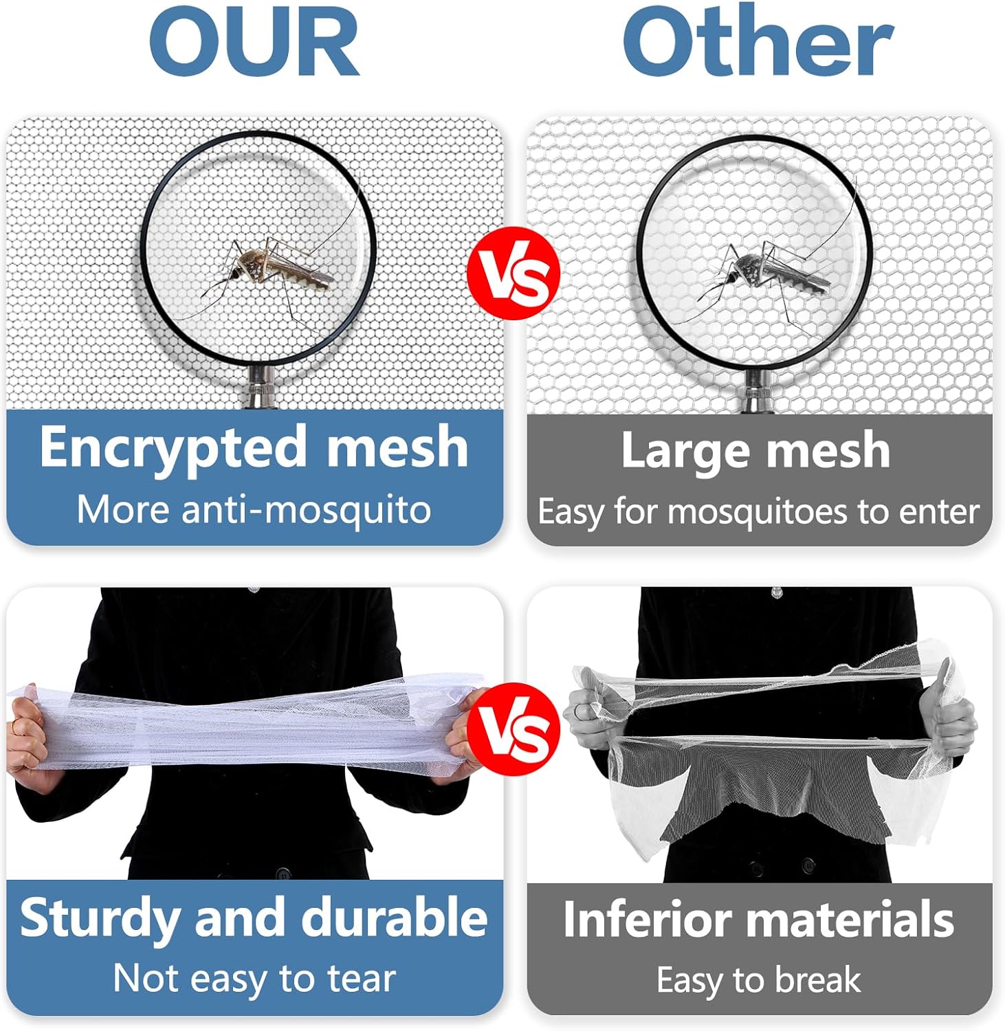 - Upgraded Quality: Mosquito net adopts robustness hexagonal breathable mesh design, which improves air circulation while enhancing durability performance. 8 fixing points make the mosquito net not easy to be deformed and keep the original shape, with the odourless fabric customized for courtyard, so that you can enjoy the outdoor life with peace of mind