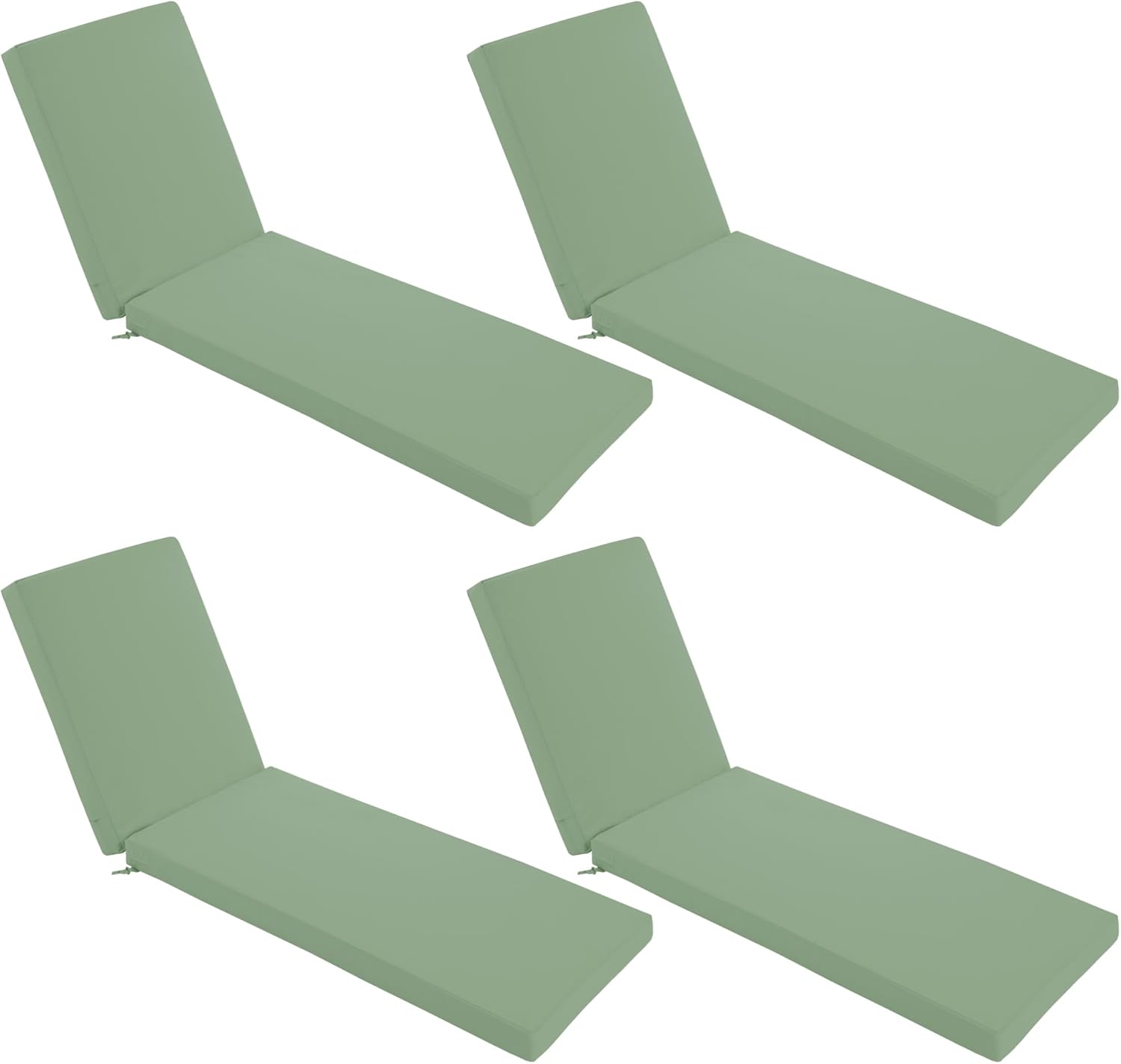 Chaise Lounge Cushions Outdoor Set of 4 - Waterproof and Fade Resistant Sun Lounger Replacement Cushions - Patio Lounger Pads with Removable Cover for Pool, Deck, 80 x 26 x 3 Inch, Sage Green