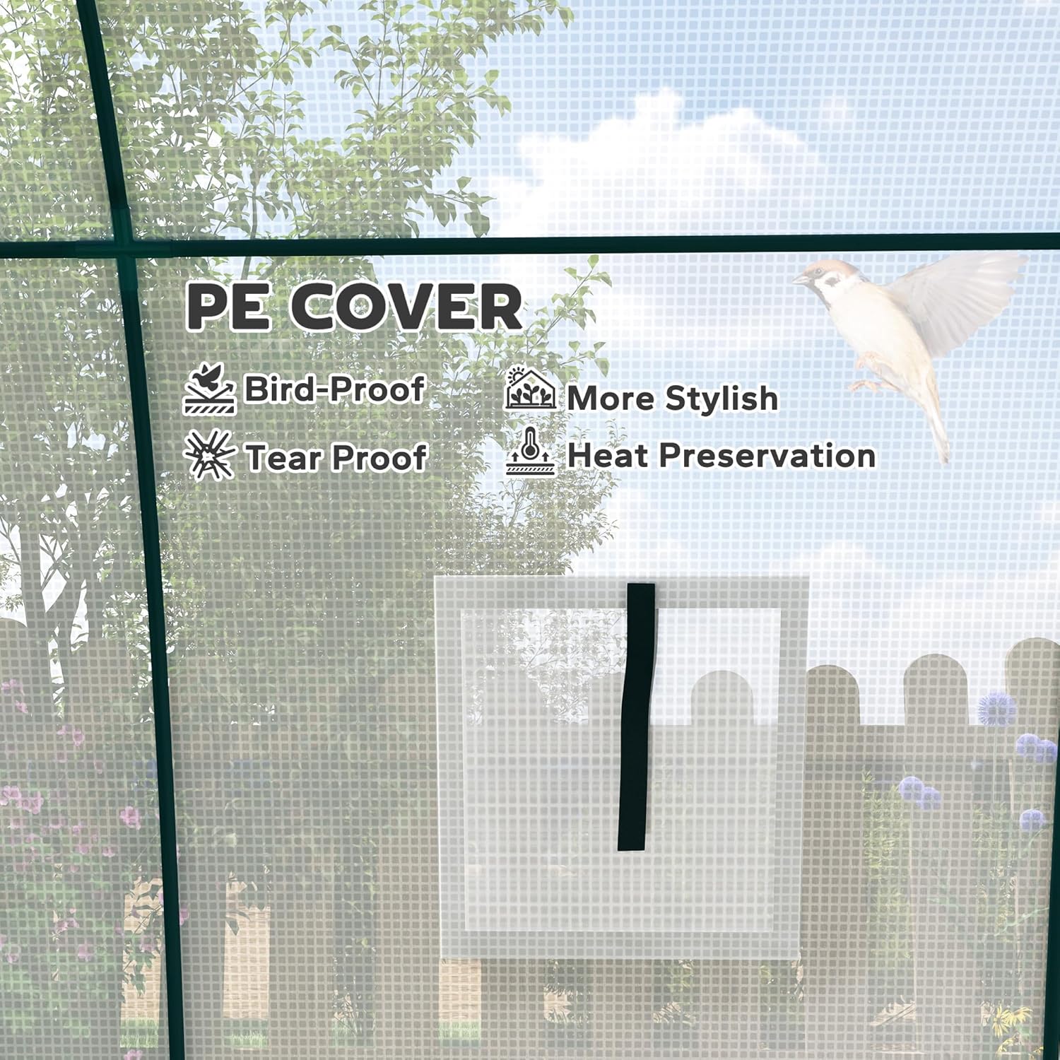 - Reinforced PE Cover: Protects plants from UV scorching while allowing 85% of nourishing sunlight to pass through. The hemmed edging and grid through the middle prevent tearing effectively, prolonging the service life of the hoop greenhouse tent