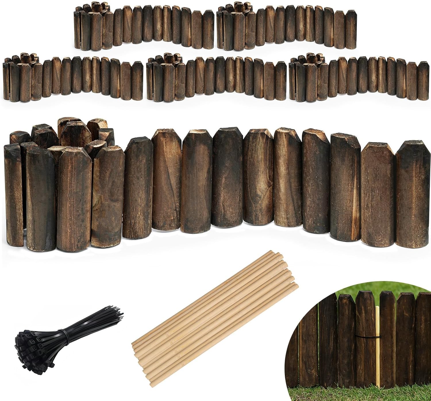 - Durable: The wood garden fence after a carbonized process and processing, the wood landscape edging border won't crack, warp, yellow, or splinter. No painting, staining or maintaining required.